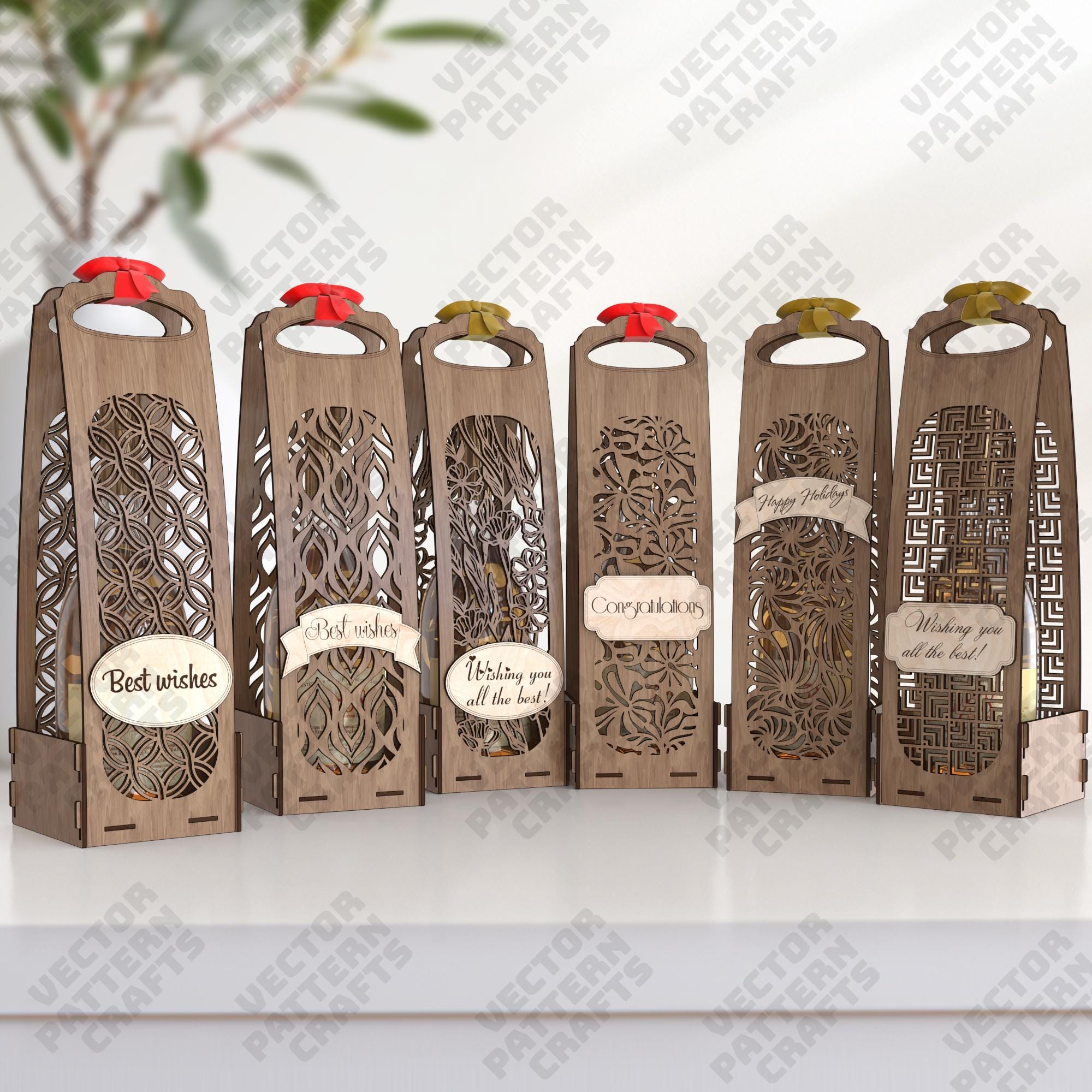 Wooden bottle wine gift box 6 set laser cut svg file Glowforge wood...