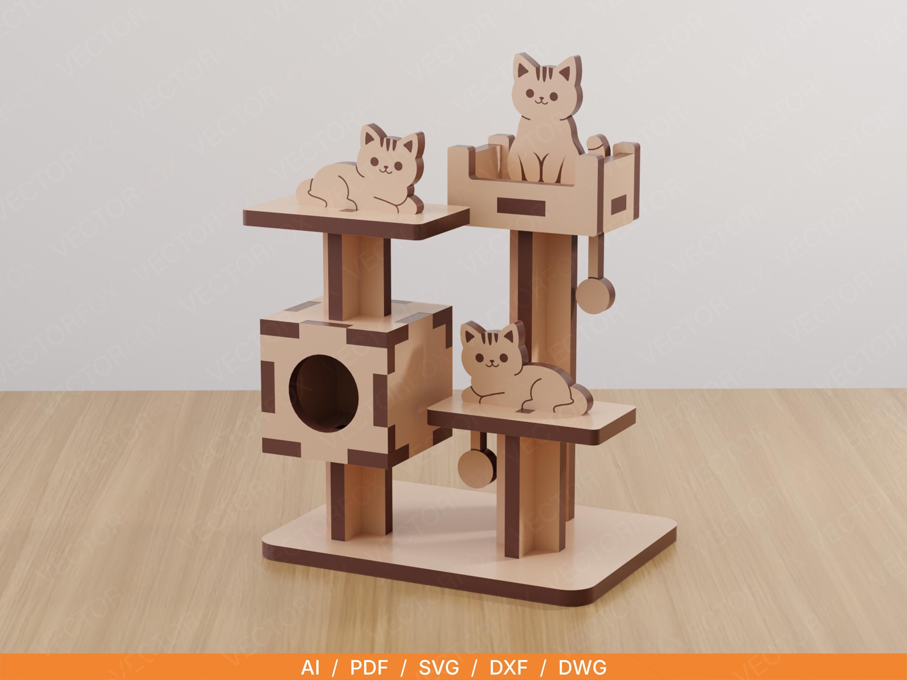 "Add a touch of cosy charm to your workspace or shelf with this Cute Cat Tower Laser Cut File. ...