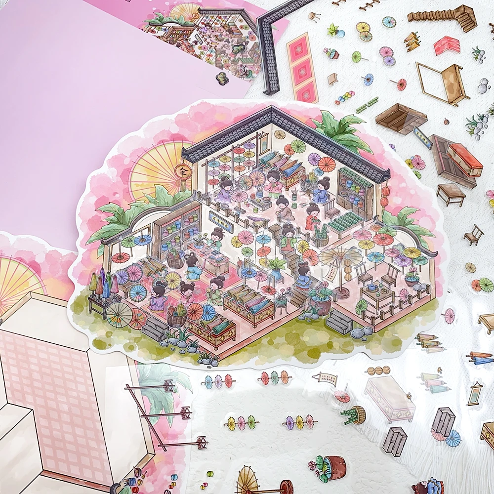 3pcs Oil Paper Umbrella Shop Miniature Scene 3D Landscaping Stickers DIY Scene Stacking and Pasting ...