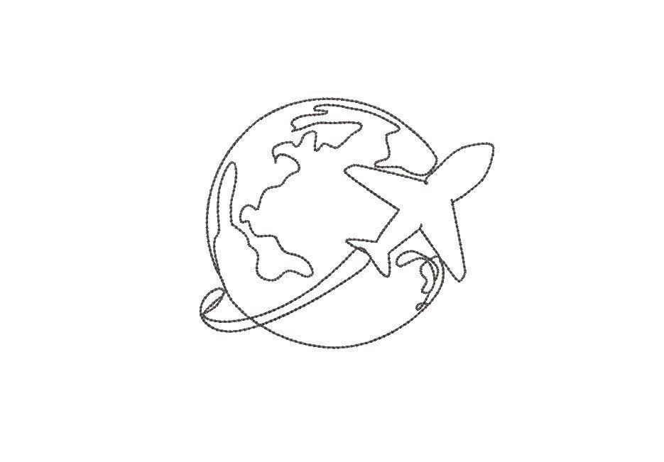 World Travel Globe Outline Machine Embroidery Design, Plane embroid...