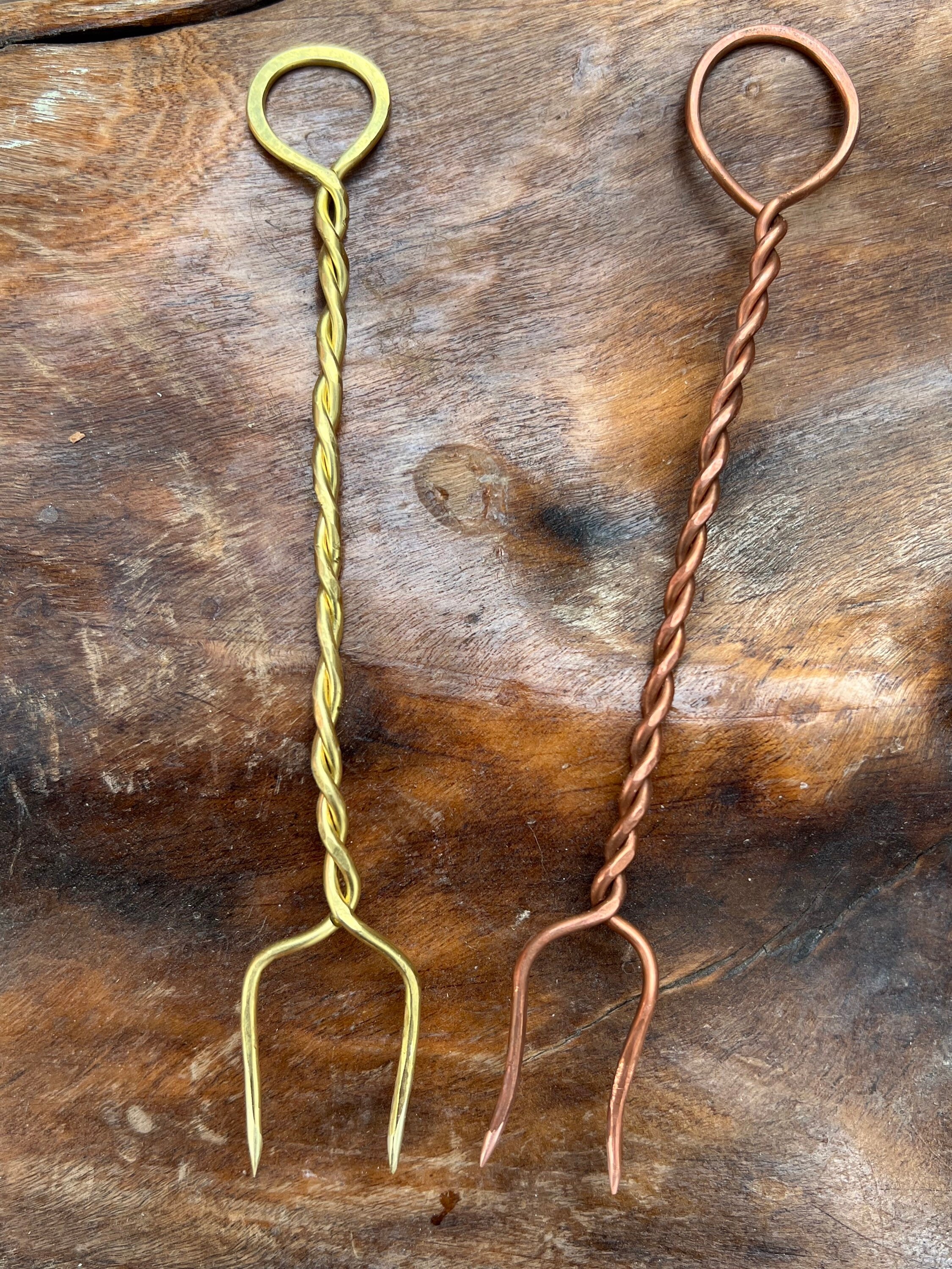 Roman Fork in brass or copper. Medieval Cutlery, Rustic Cutlery, Me...