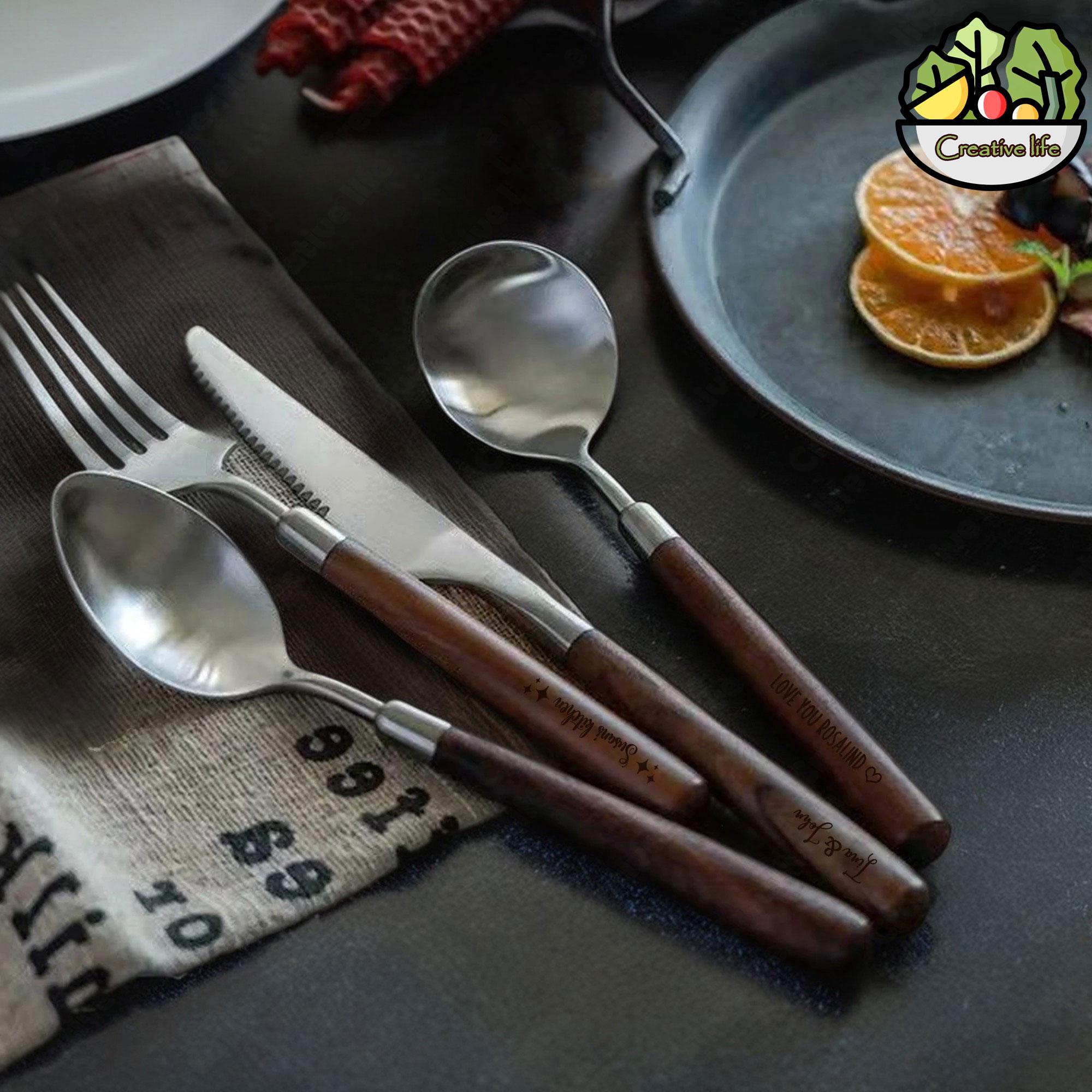 Personalized Rosewood Spoon and Fork Set, Kitchen Utensils , Wood S...