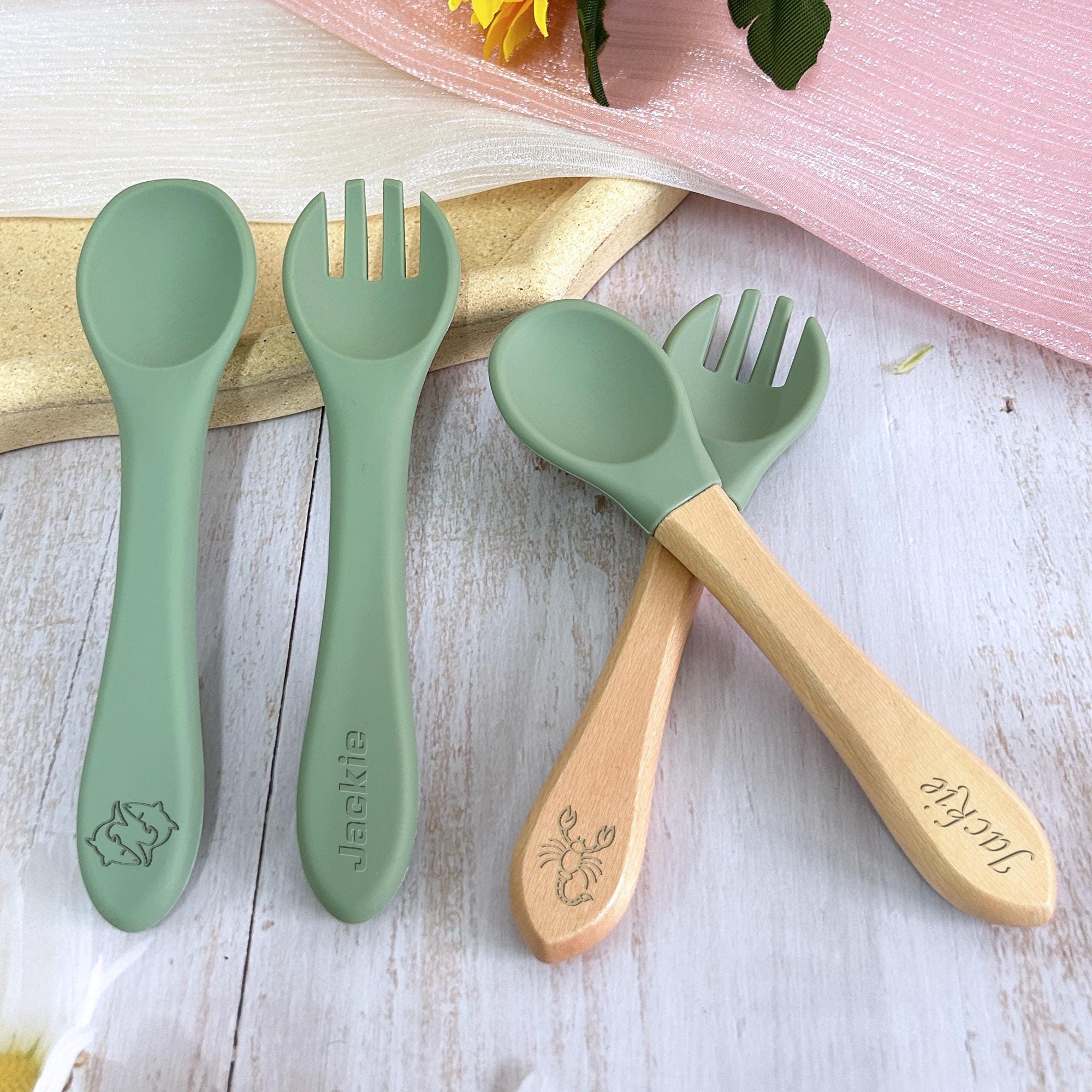 Customized Baby Fork And Spoon Set,Silicone Tableware,Wooden Handle...