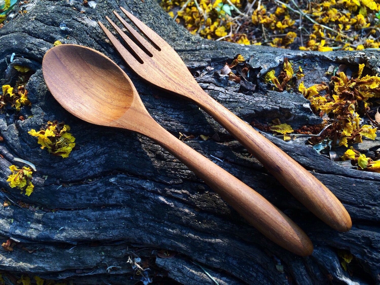 Teak Wood Spoon and Fork Utensils | Kitchen Utensils | Spoon and Fo...