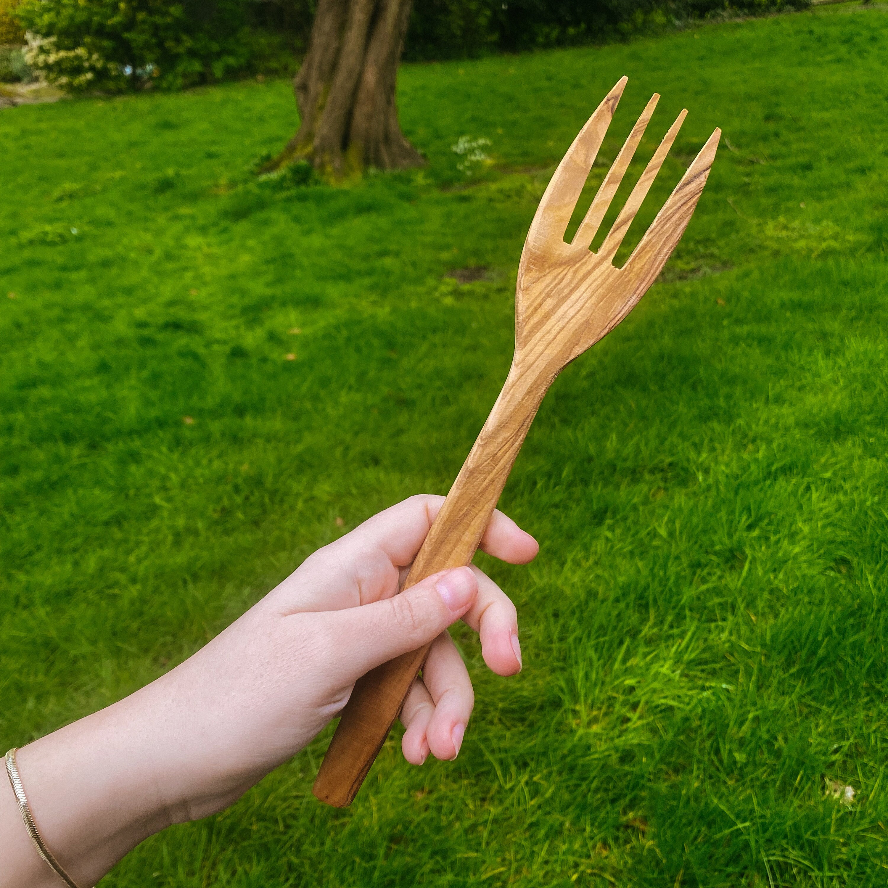 Salad cutlery made of olive wood (about 30 cm long) - Unique pieces...