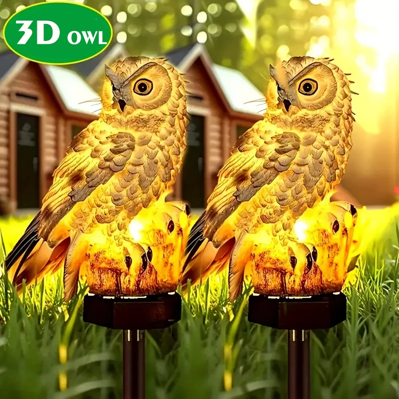 Solar Owl Garden Light,Outdoor Waterproof Pathway Lamp,Smart Sensor Ground Spike Light,Patio Decor,L...