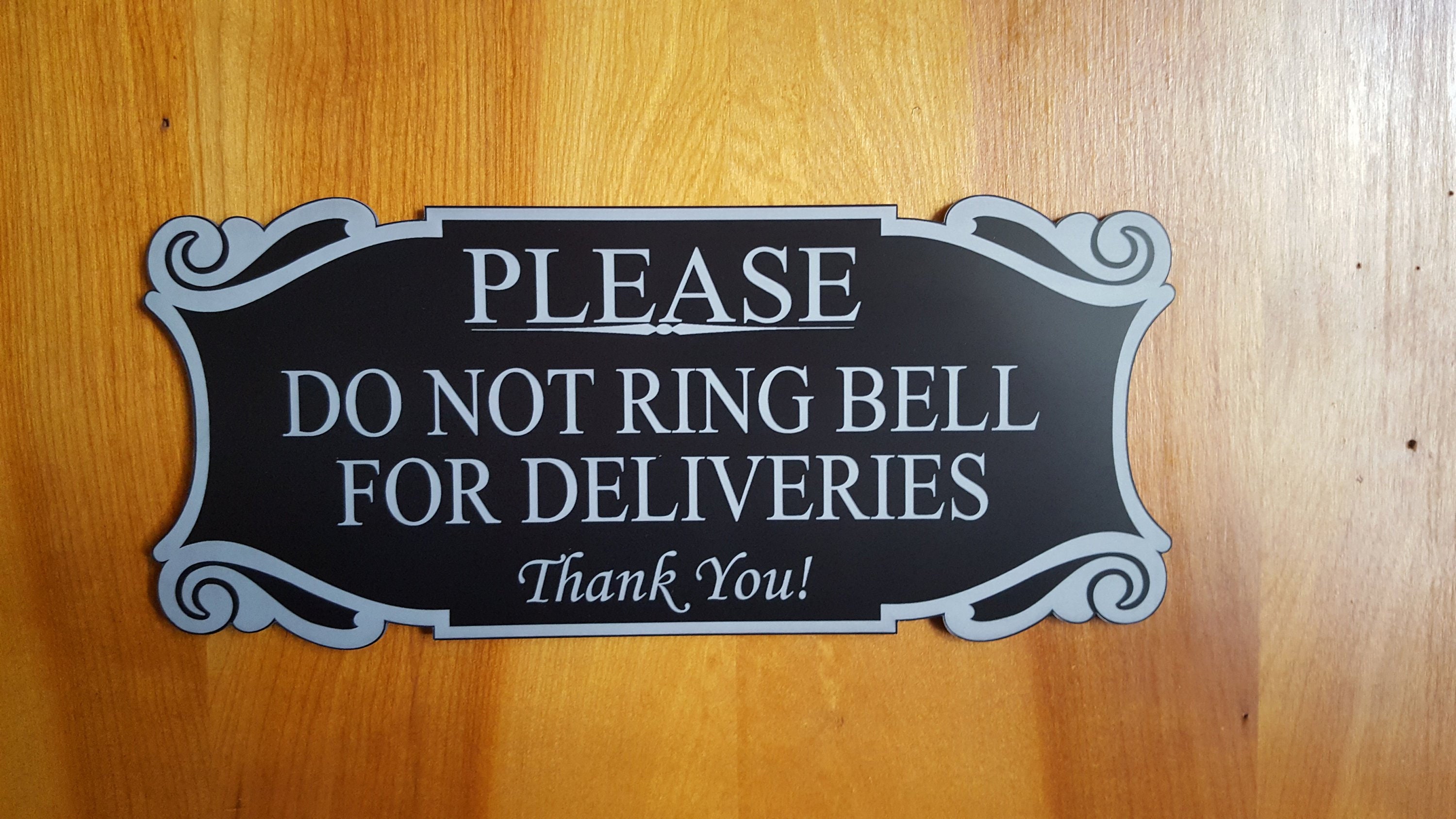 "Please Do Not Ring Bell For Deliveries Sign 4.5\" x 10\" Laser engraved on High Qual...