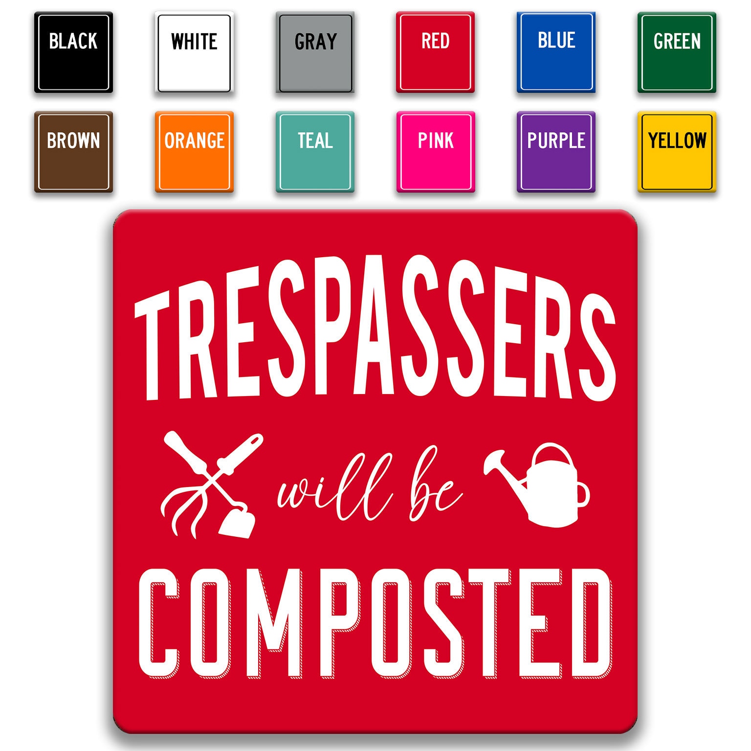 Warning trespassers they will be composted with this fun gardening humor sign! Available in 12 color...