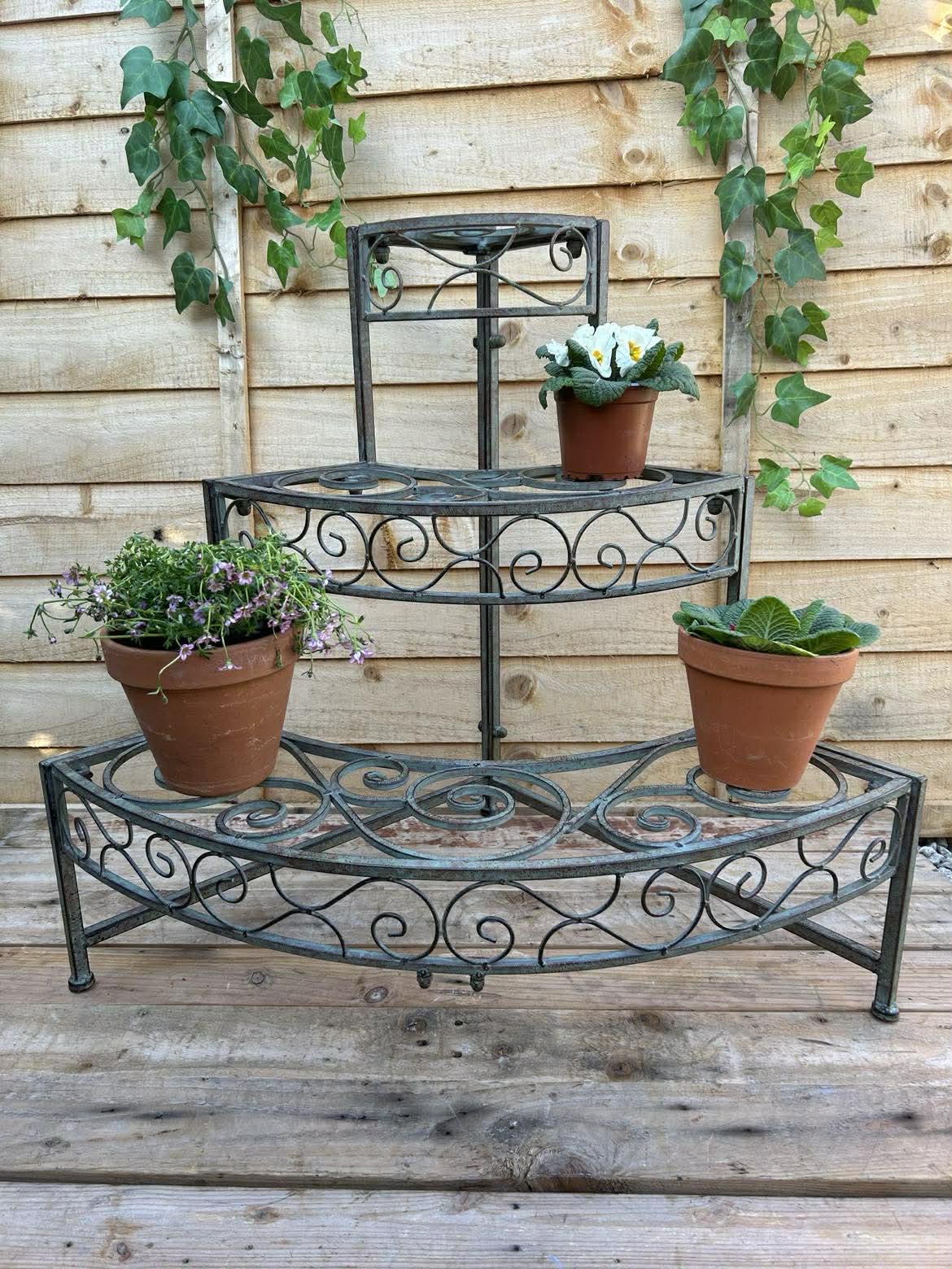 Country Grey 3 Tier Ornate Metal Outdoor Corner Plant Stand Garden ...