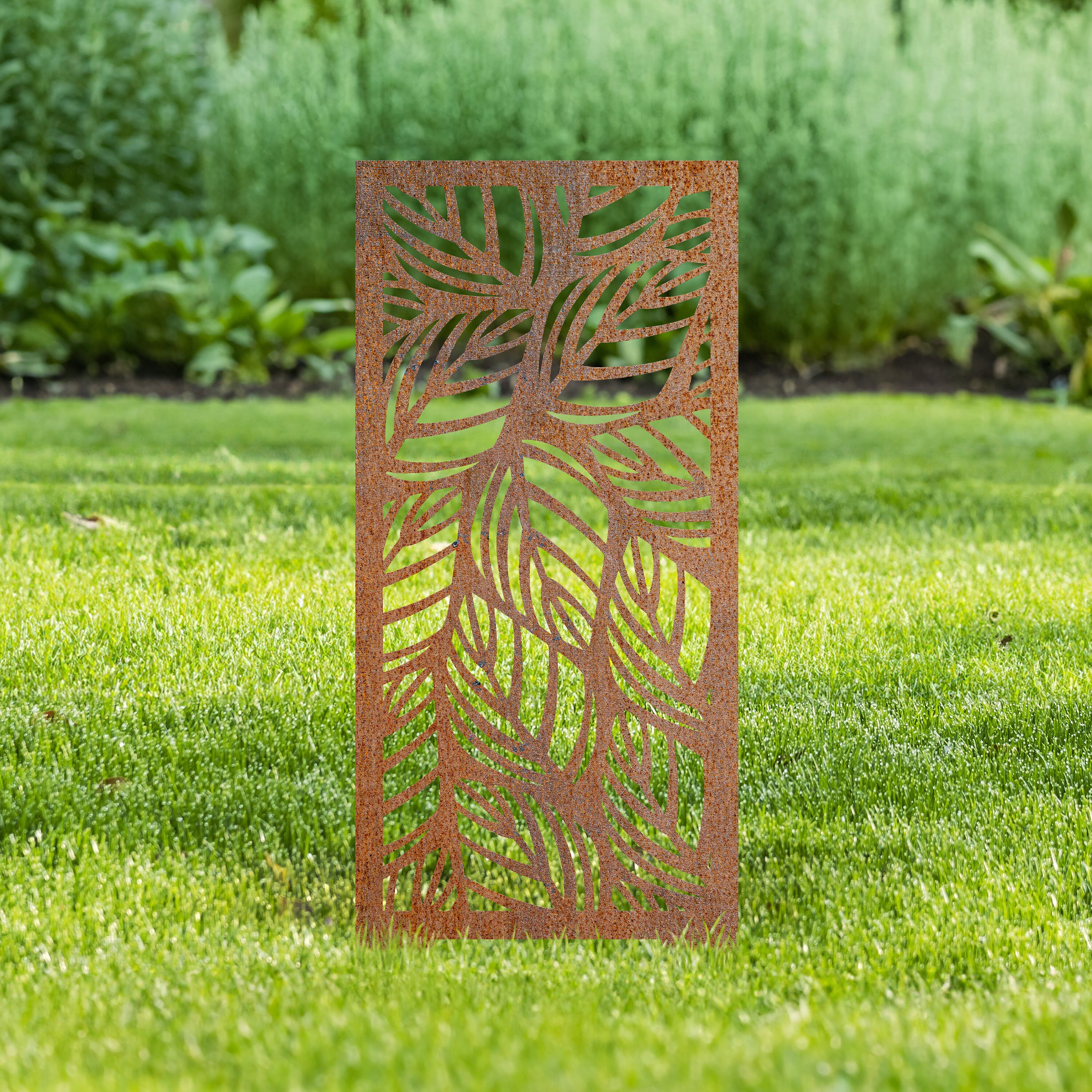 Corten Steel Garden Screen in Monstera - Modern Outdoor Privacy Pan...