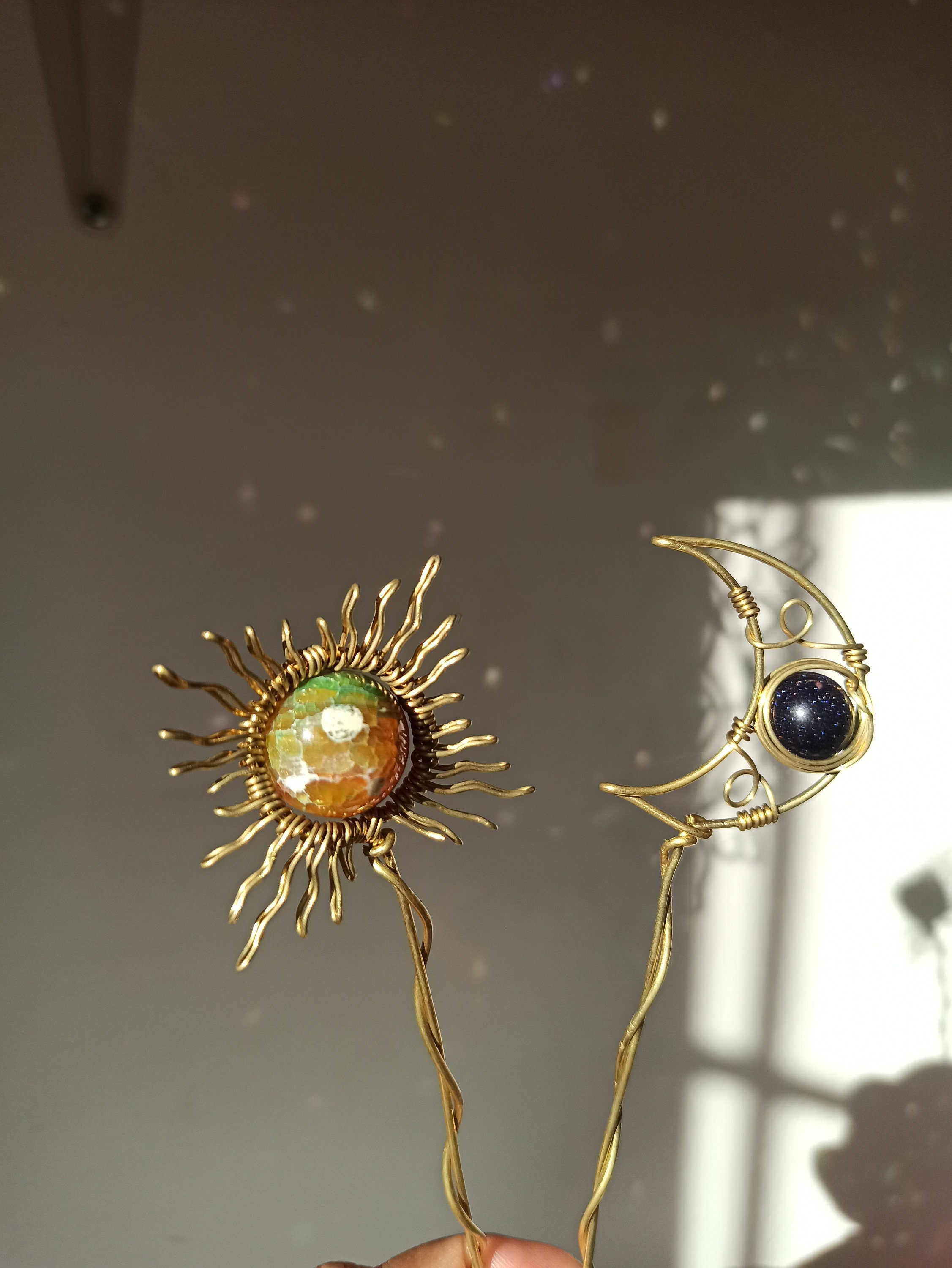 "Highlight your home and pots with this sun and moon beaded garden, ideal for celestial lovers ...