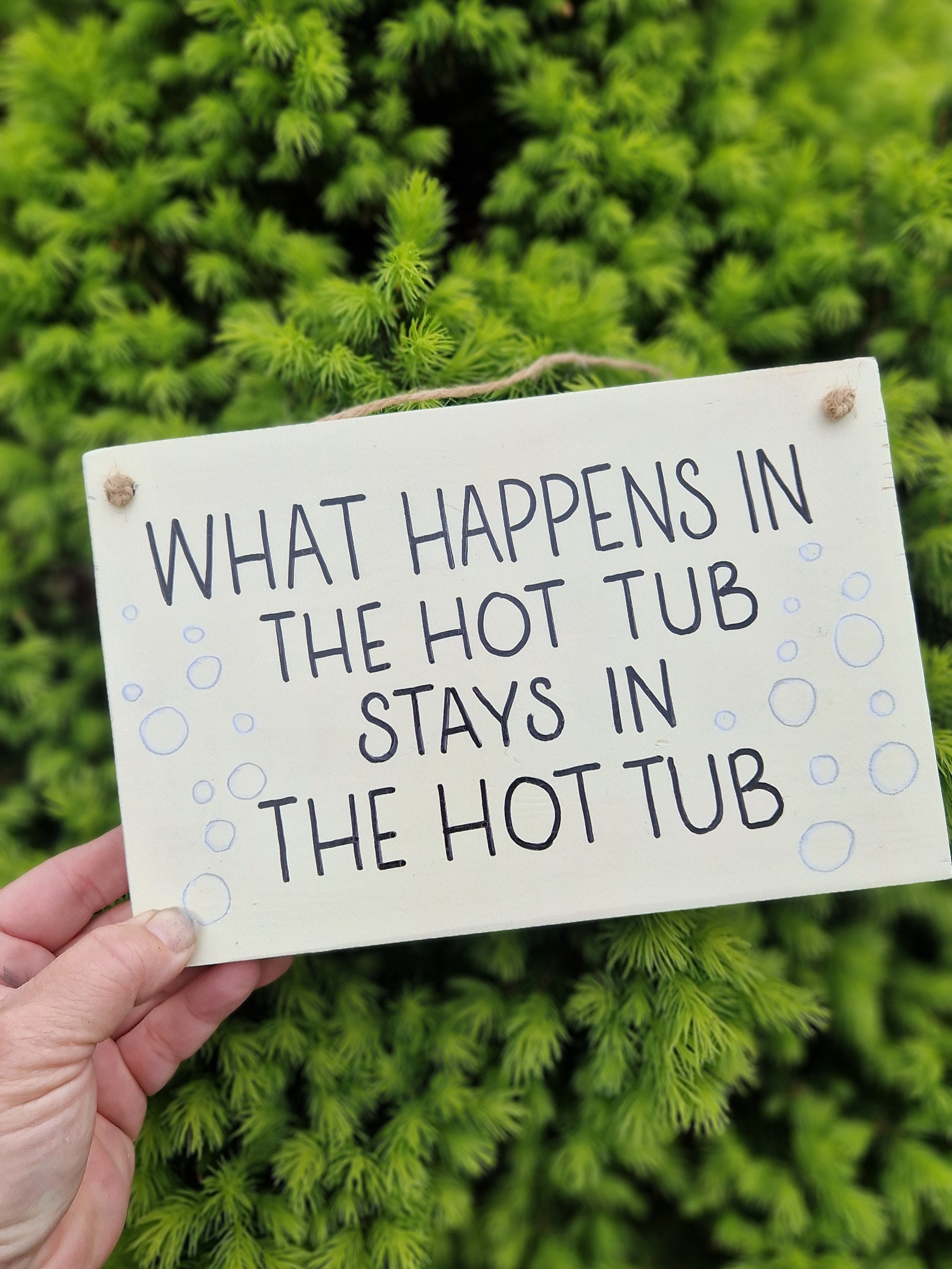 What happens in the hot tub stays in the hot tub - wooden sign - ho...