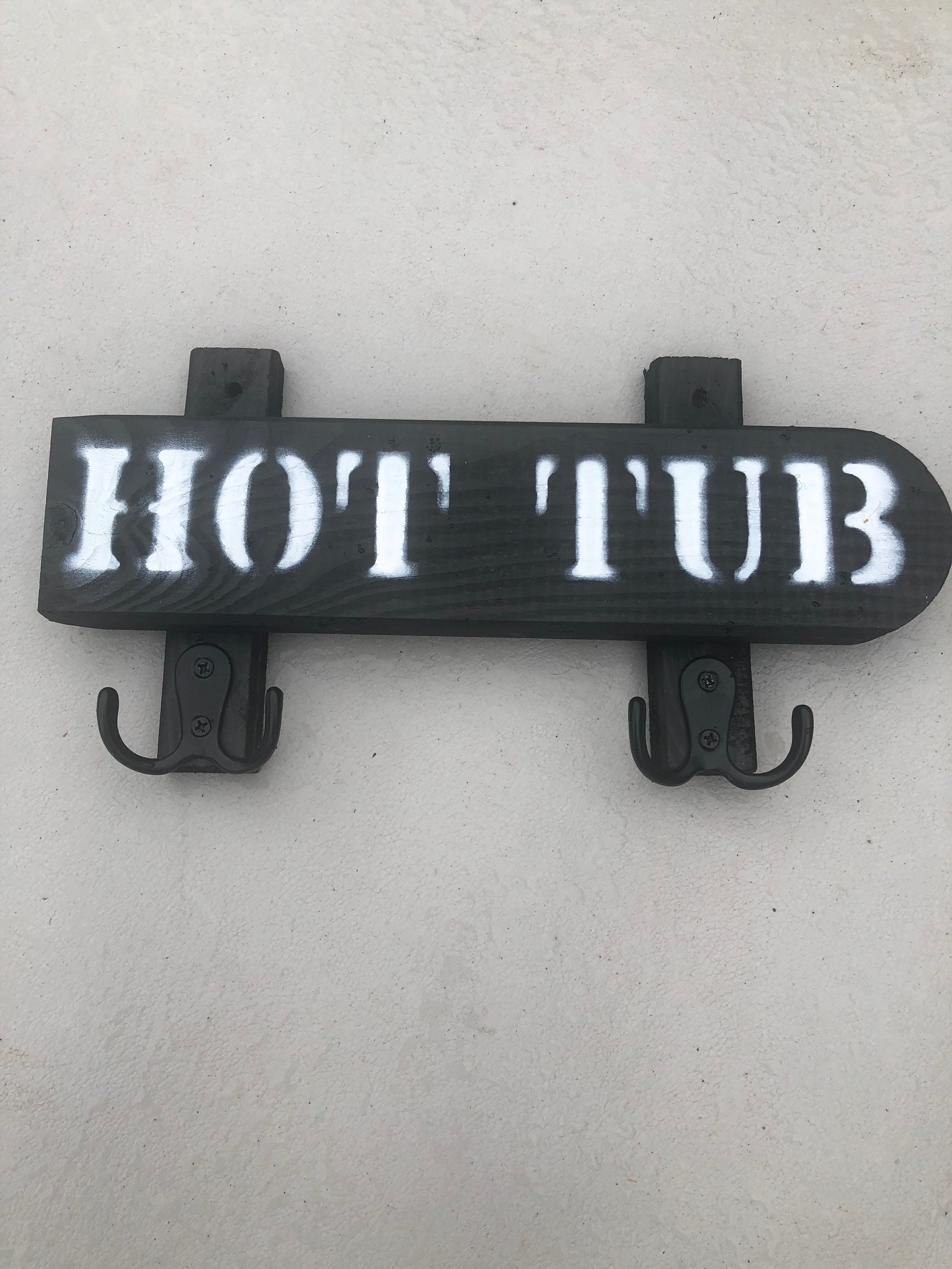 New Hot tub sign black and white with hooks for towels or robe etc ...