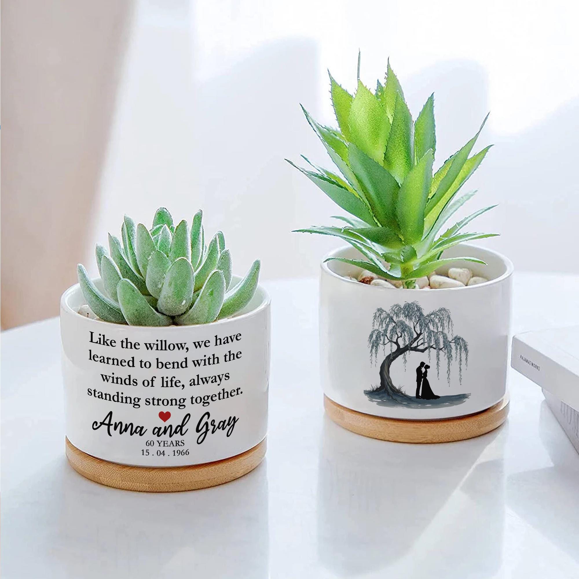 Anniversary Willow Tree Gifts Plant Pot, Year Anniversary Willow Plant Pot, Willow Tree 60 Year Anni...