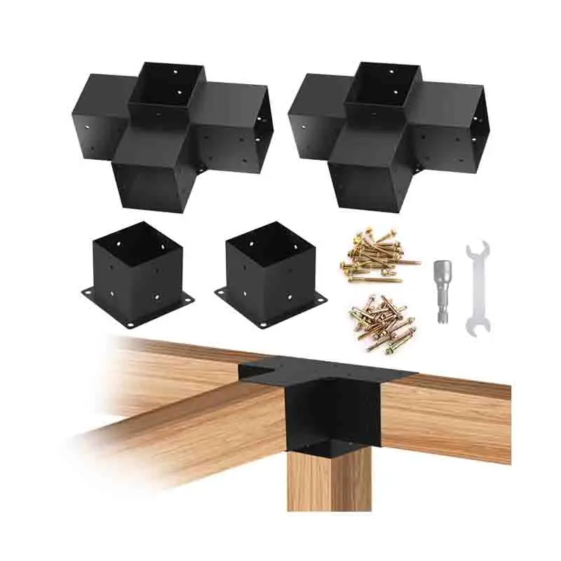 Pergola DIY Kit 3-Way T-Angle Corner Brackets Elevated Wood Stand f...