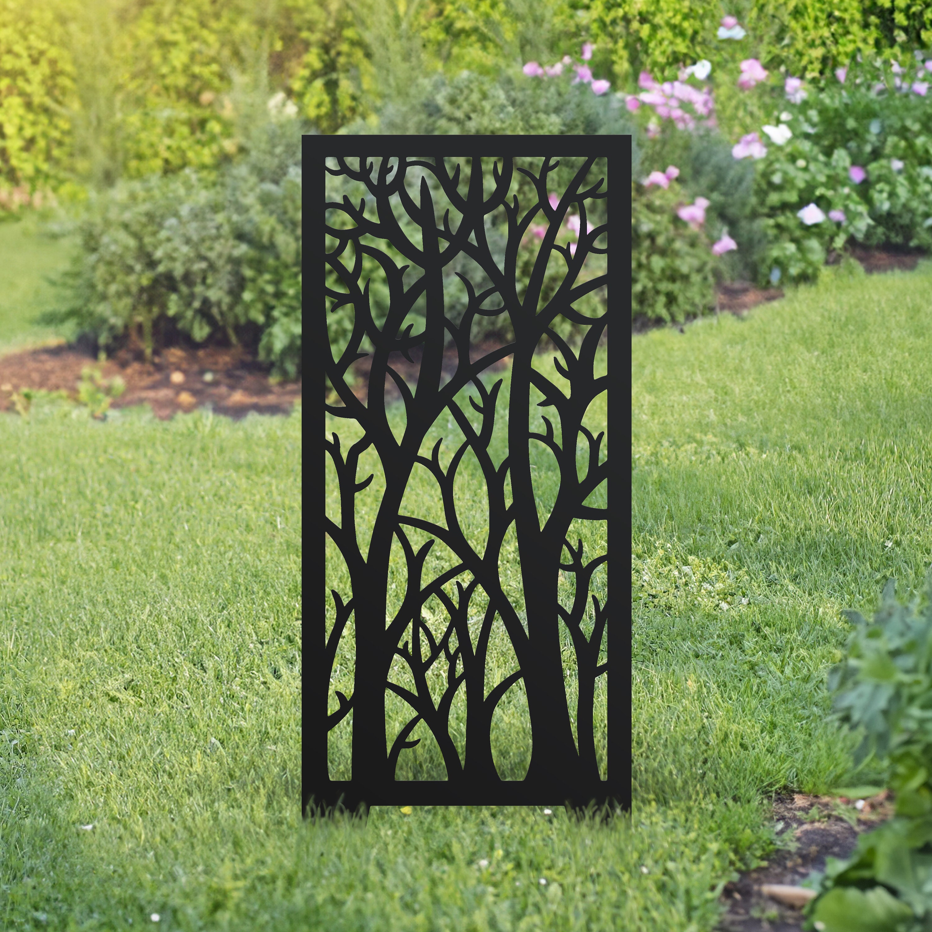 Corten Steel Garden Screen - Woodland Design Decorative Metal Panel - Rust Garden Privacy Screen - O...