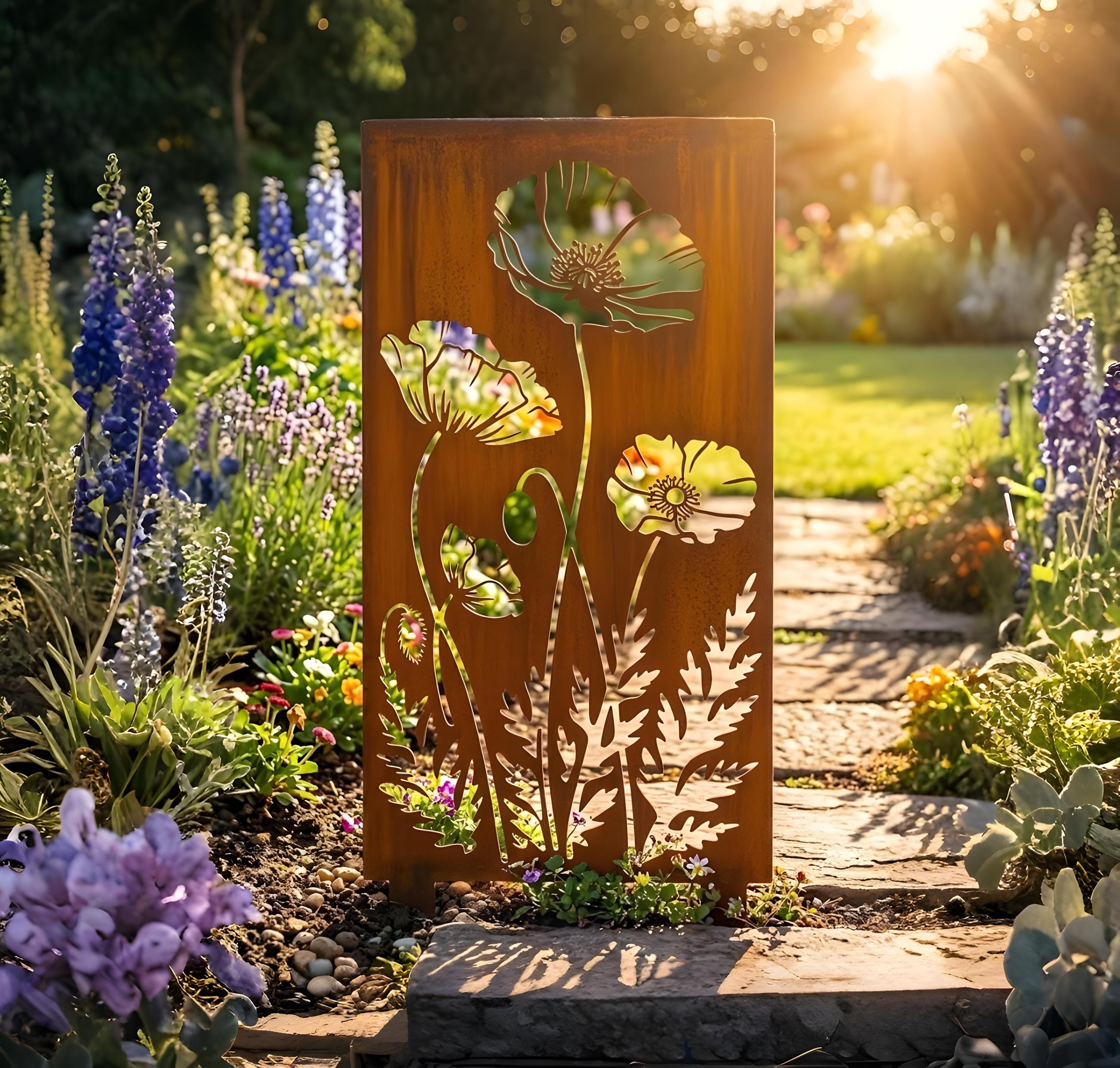 Metal Garden Privacy Screen with Poppy Flowers, Outdoor Decorative ...