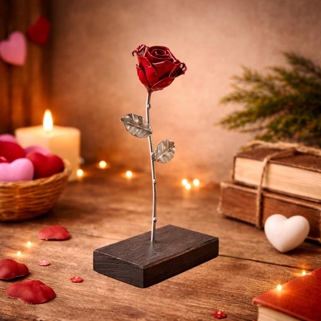 Eternal Wrought Iron Rose with Base - Gift for Saint Valentine's Da...