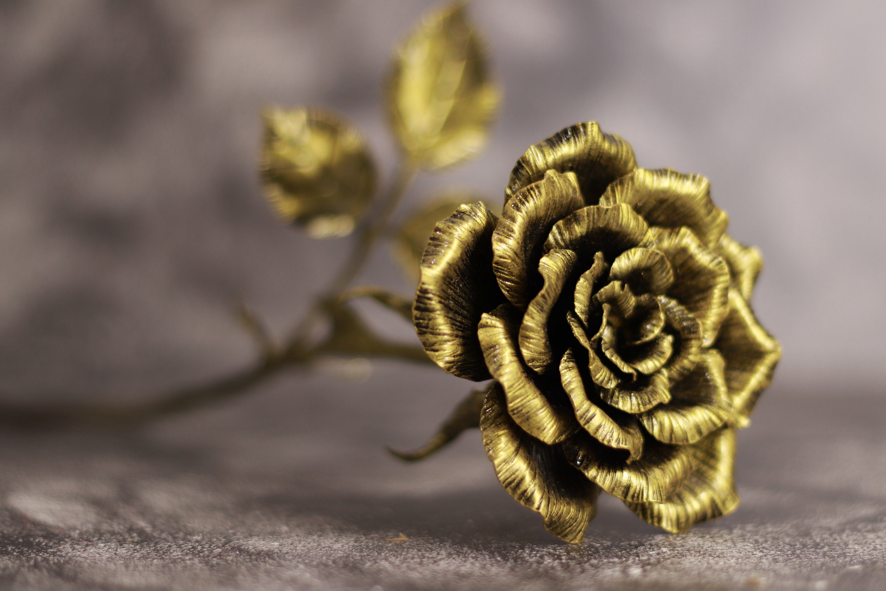 metal rose in golden color - Handmade forged iron rose - wrought st...
