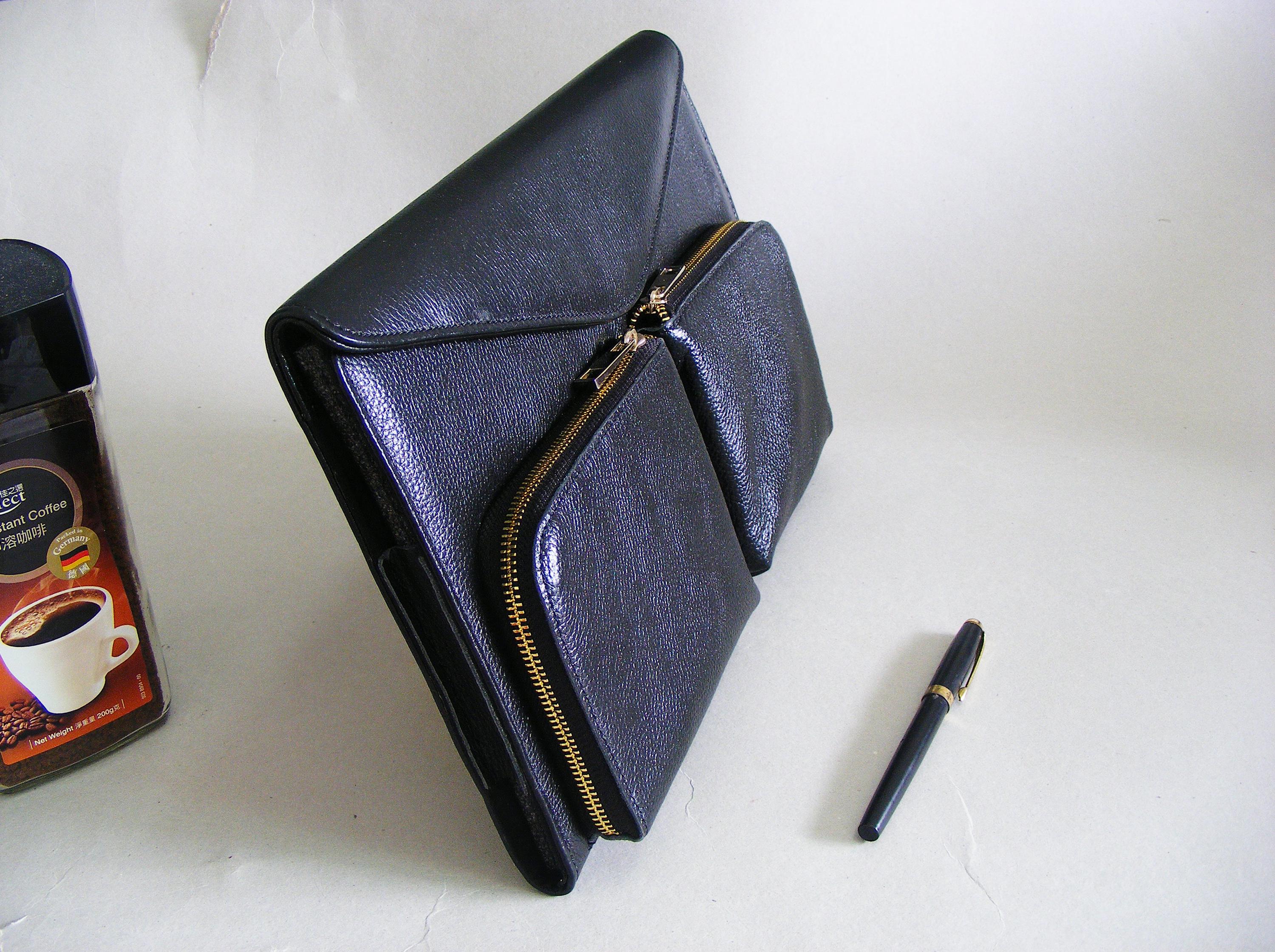 Apple macbook pro leather briefcase for mac pro with two zipper pockets for carrying charger and mou...