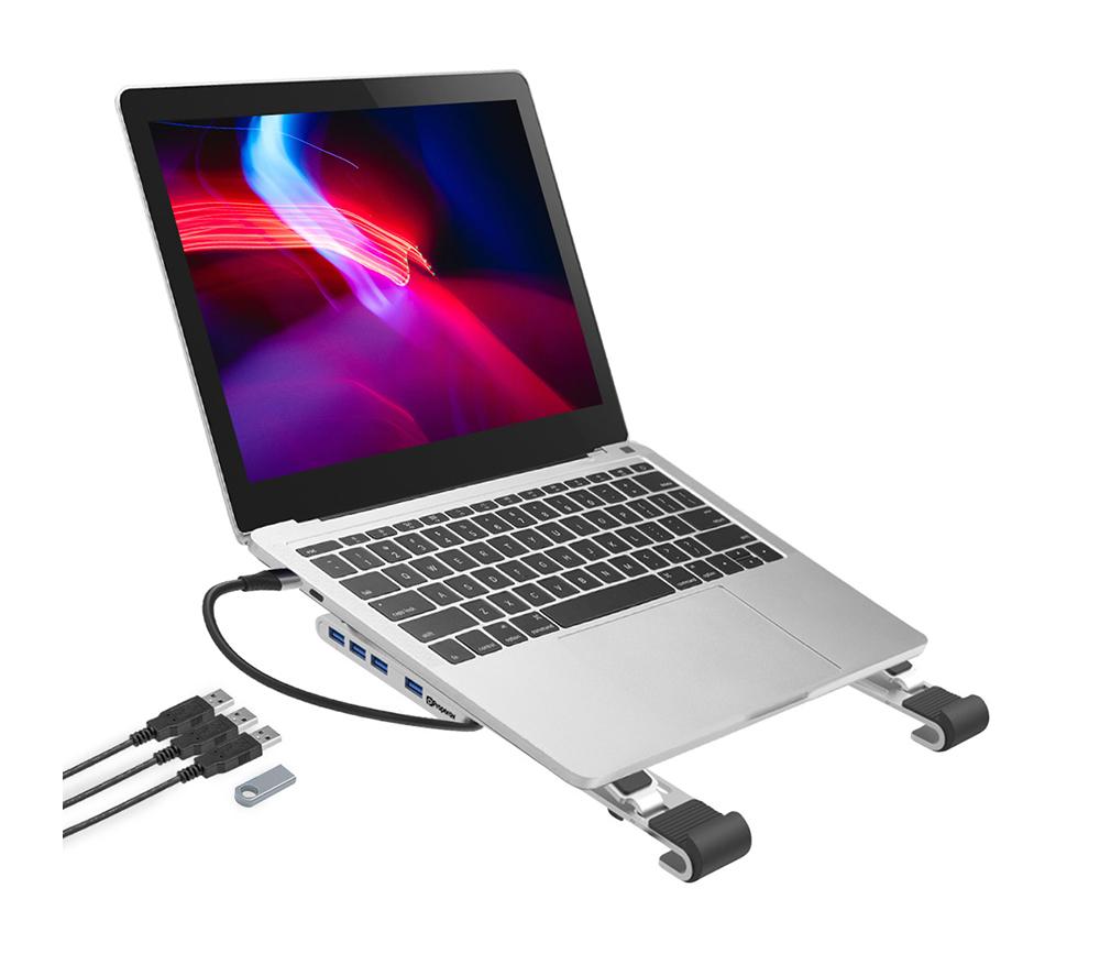 PROPERAV P-LSUSB-4 Laptop Stand with USB Hub - Silver