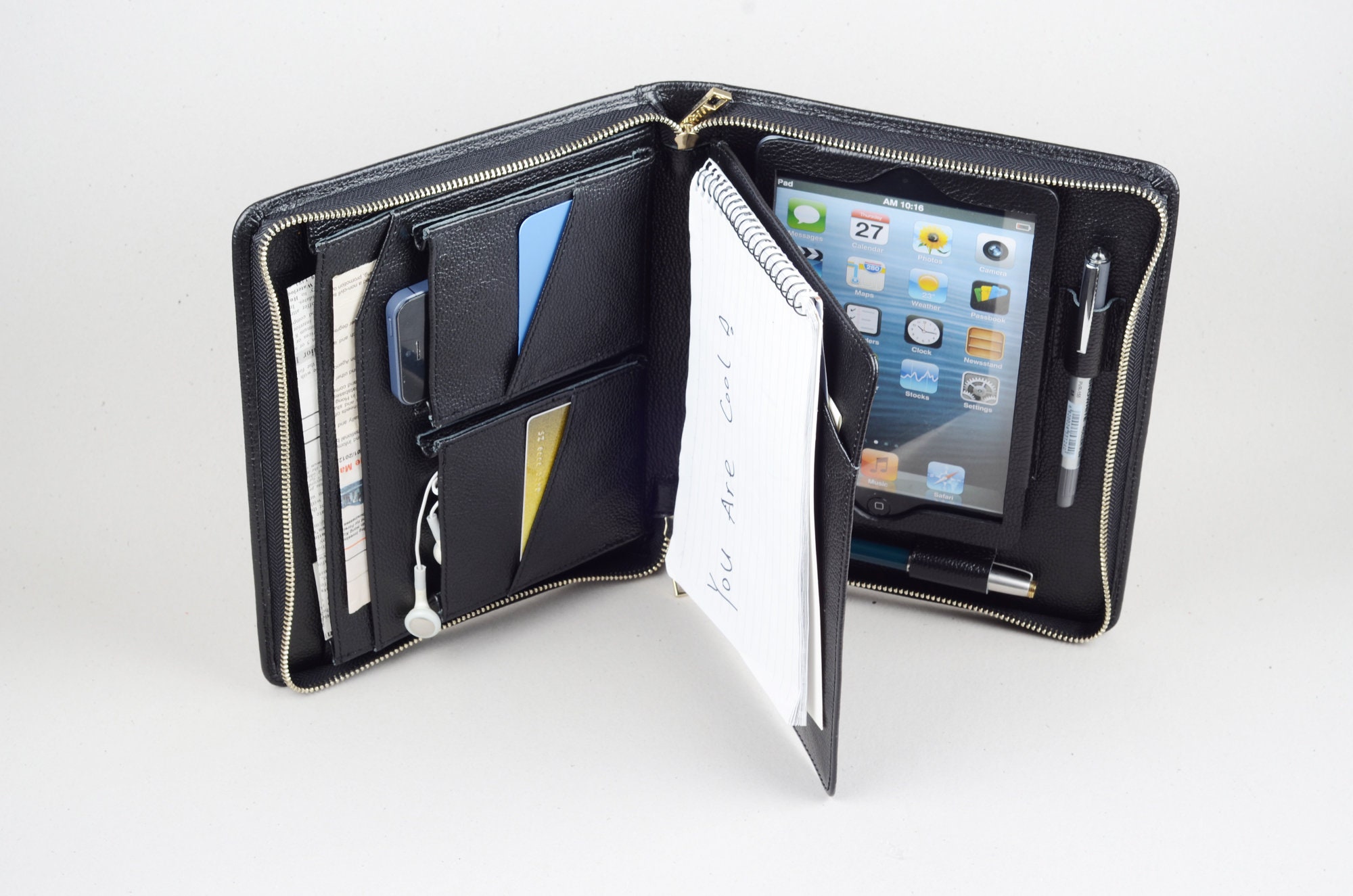 Leather iPad Mini Portfolio Case with A5 Notepad, iPhone Pockets
