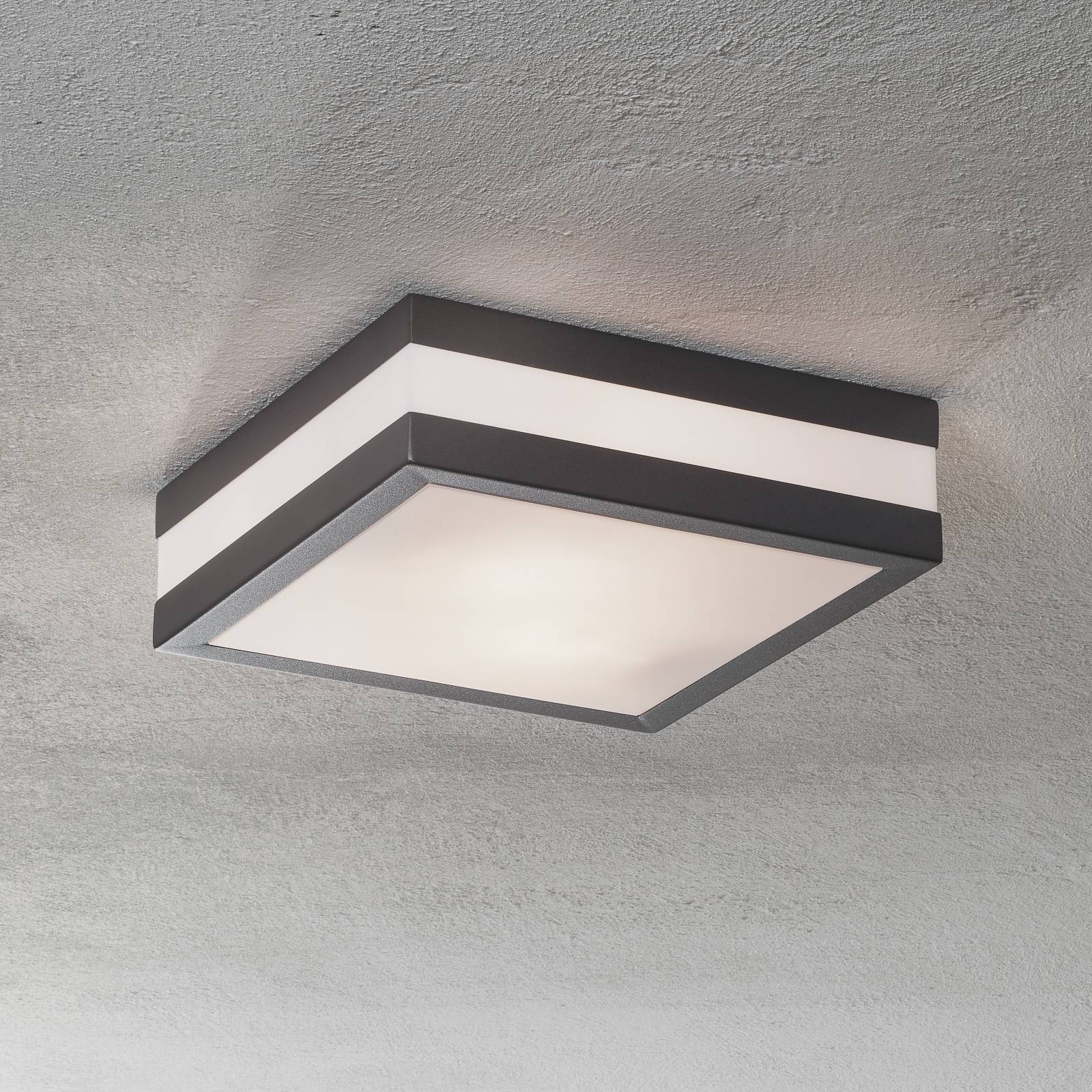 The Thilo LED outdoor ceiling light has a simple square basic shape and a polycarbonate diffuser in ...