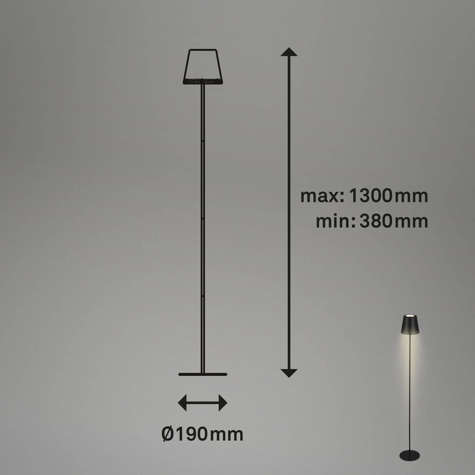 Briloner Kiki LED floor lamp with rechargeable battery, 3,000K, bla...