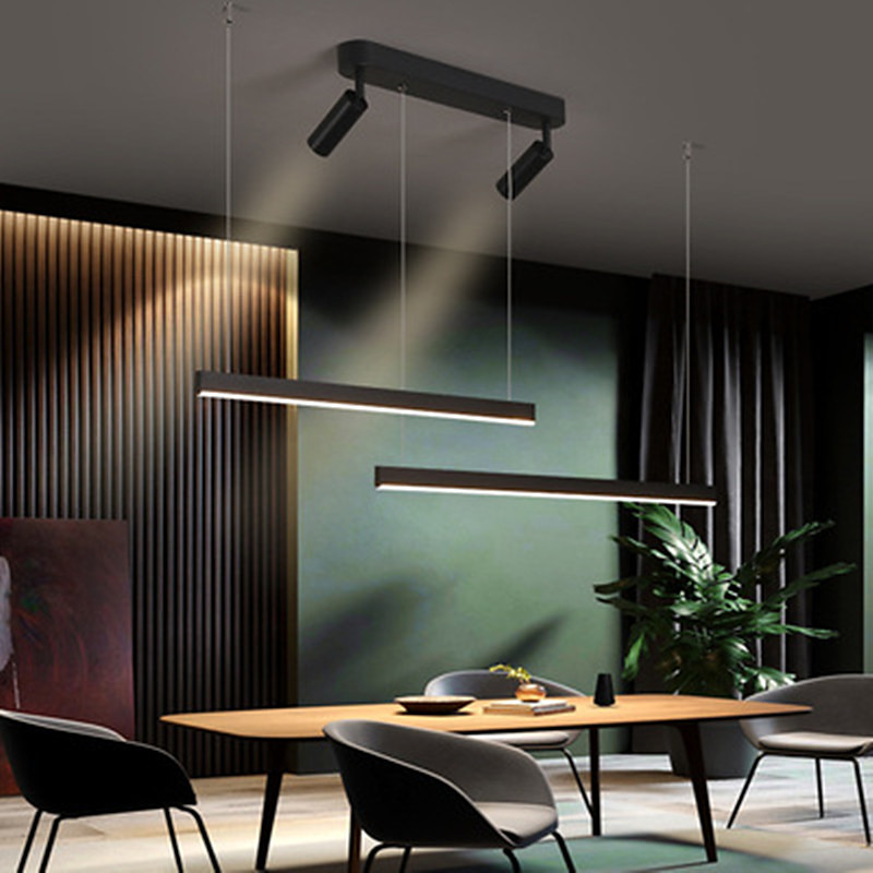 LED Pendant Light Black 110 cm Island Light With Spot Lights Chande...