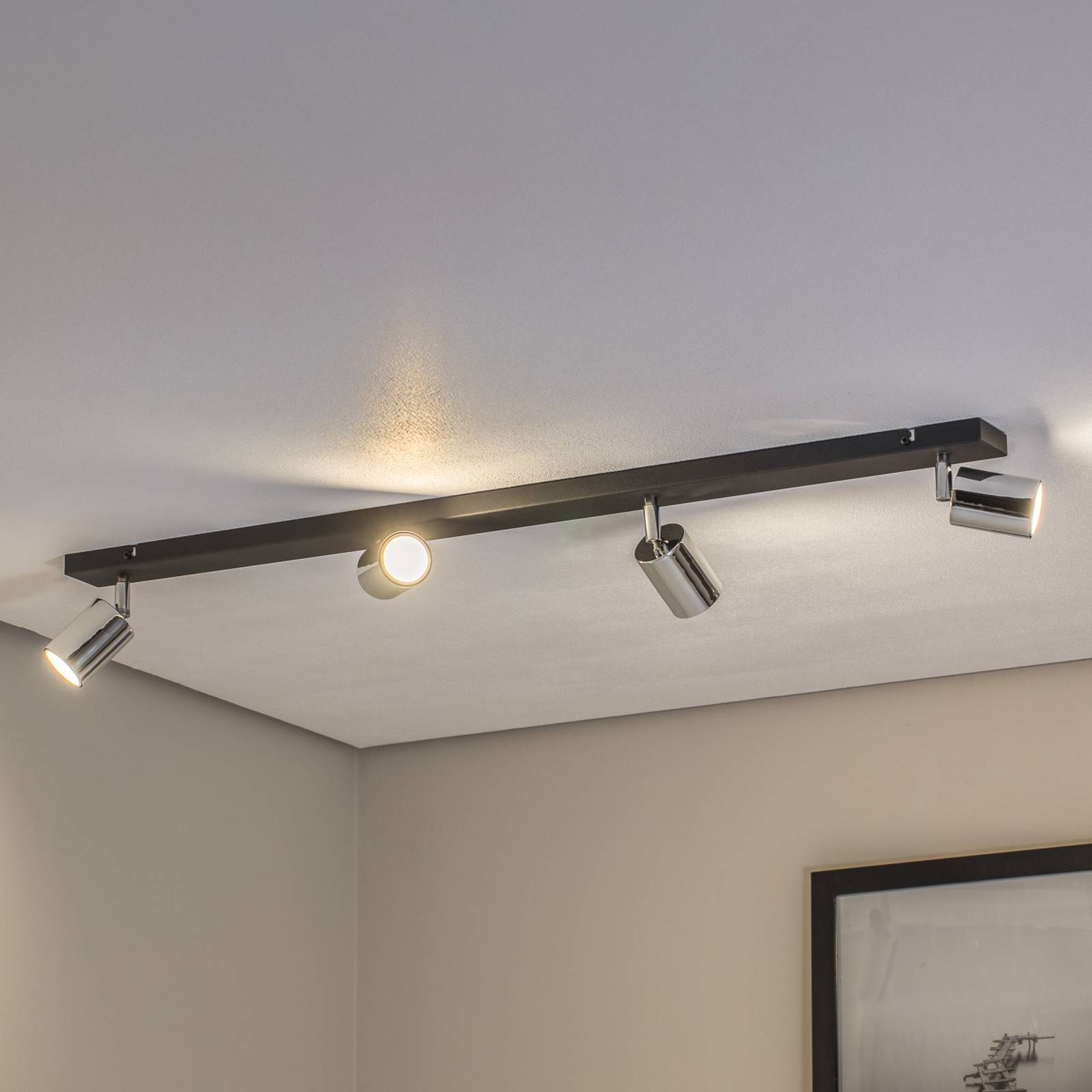 Tune II ceiling lamp, black/chrome, metal, 4-bulb, elongated HELAM,...