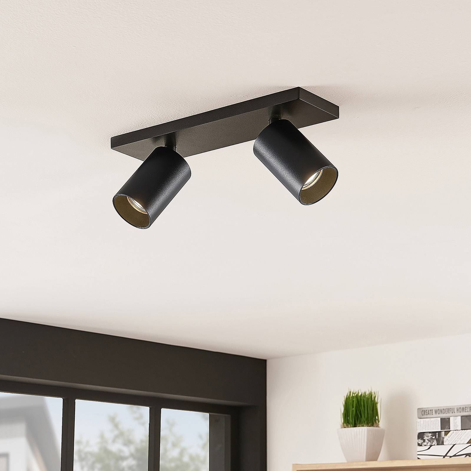 Henega headlamp ceiling spotlight, black, 2-bulb Lindby, dimmable, ...