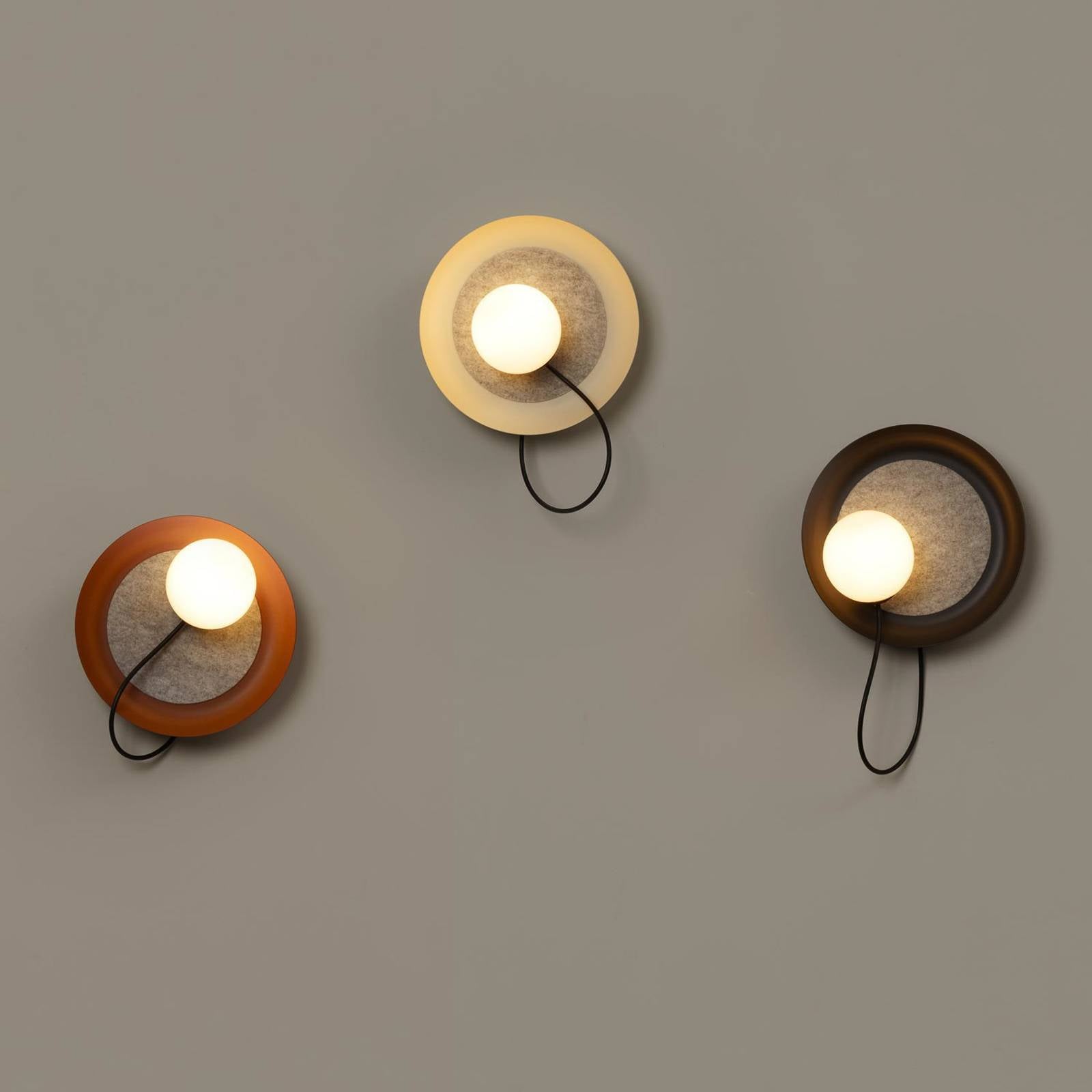 The Wire wall light consists of a steel shell, which is lined with felt in the centre, and a glass d...