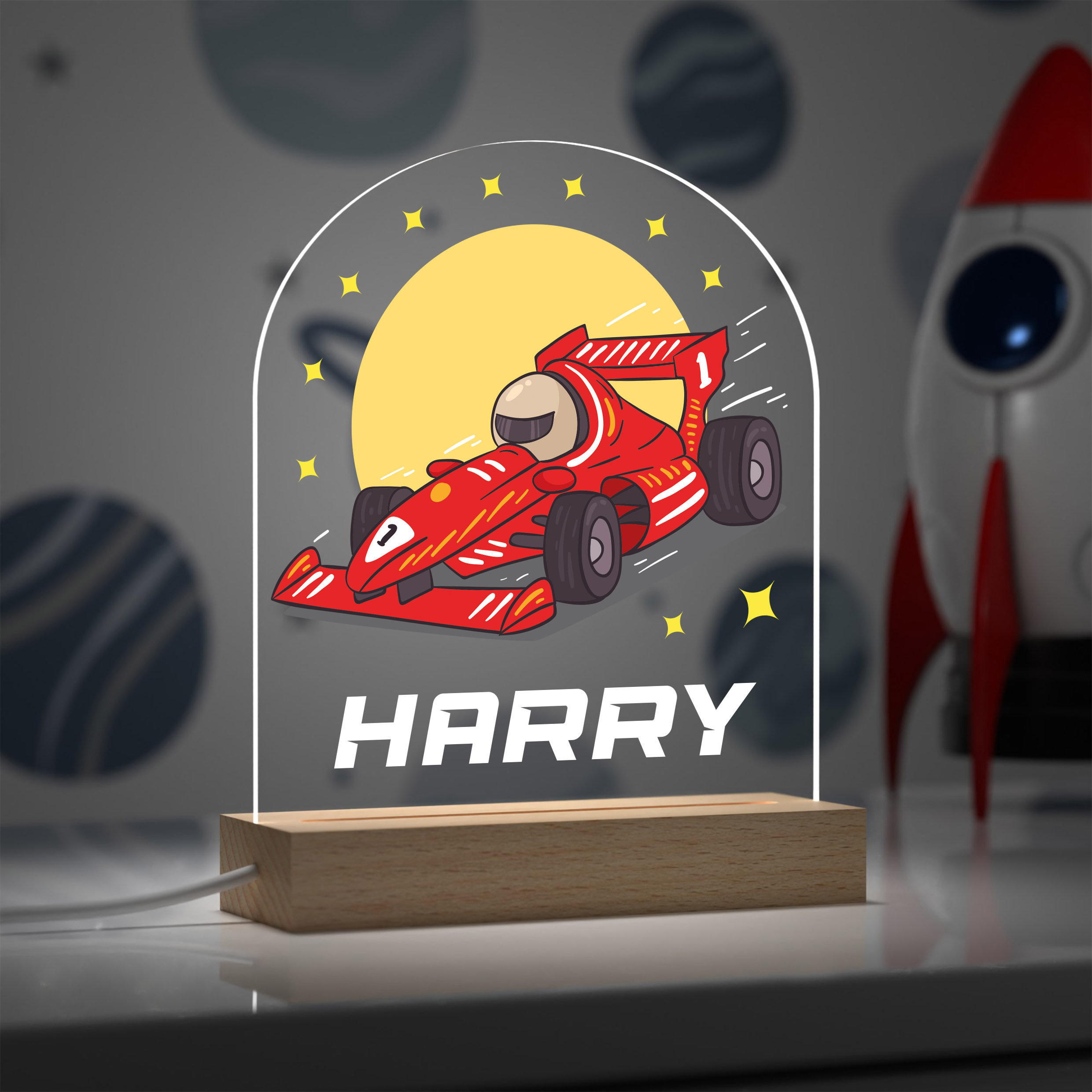 Perfect for any bedroom, our Personalised Racing Car night light will make a great addition to any b...