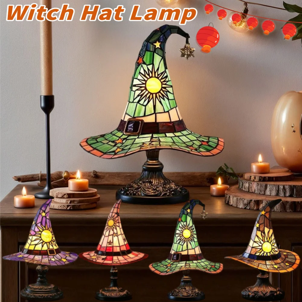 Creative Witch Hat Lamp Stained Glass Witch Hat Lamp USB Powered Cr...