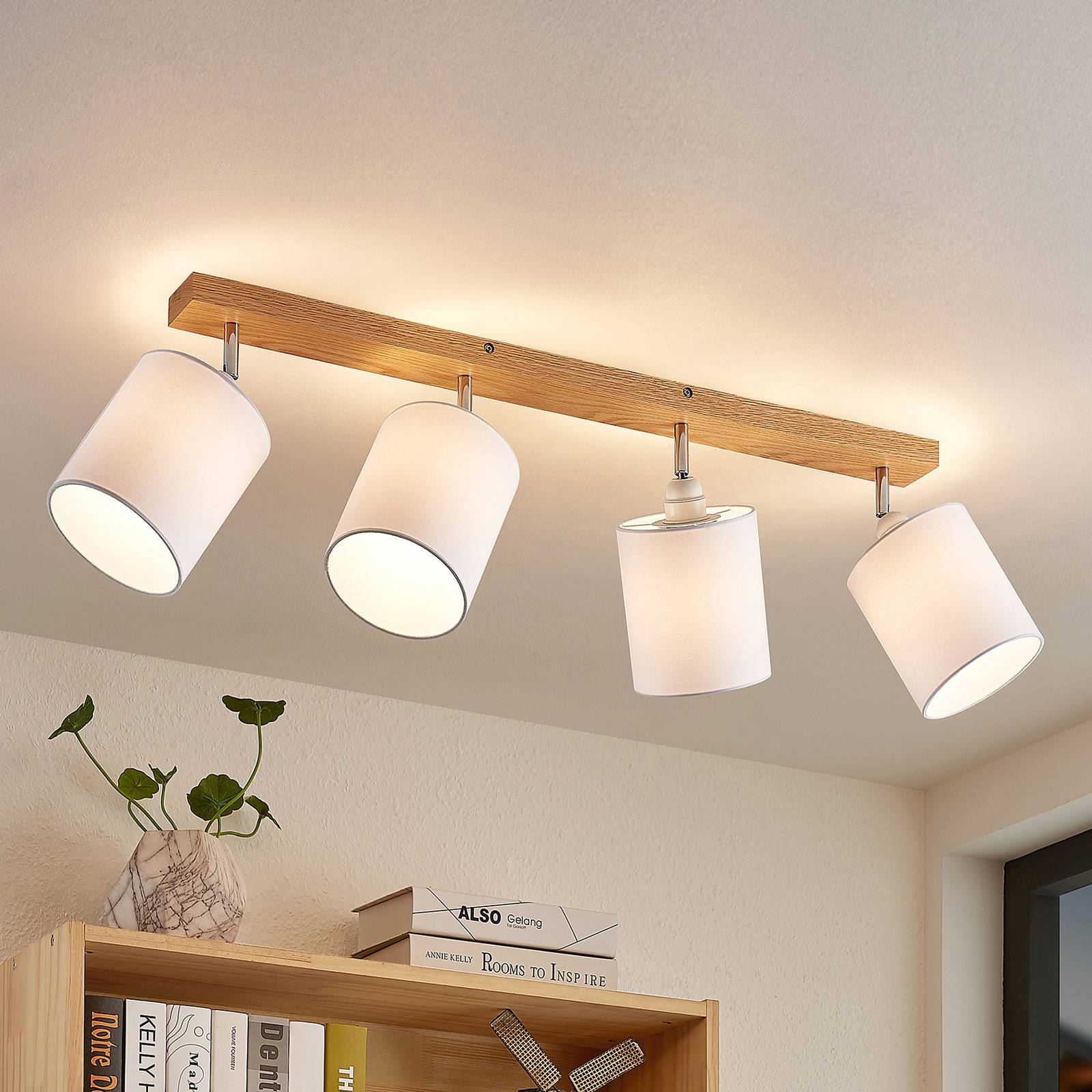 Lindby Imarin ceiling spotlight, 81 cm, white, 4-bulb, wood Lindby,...