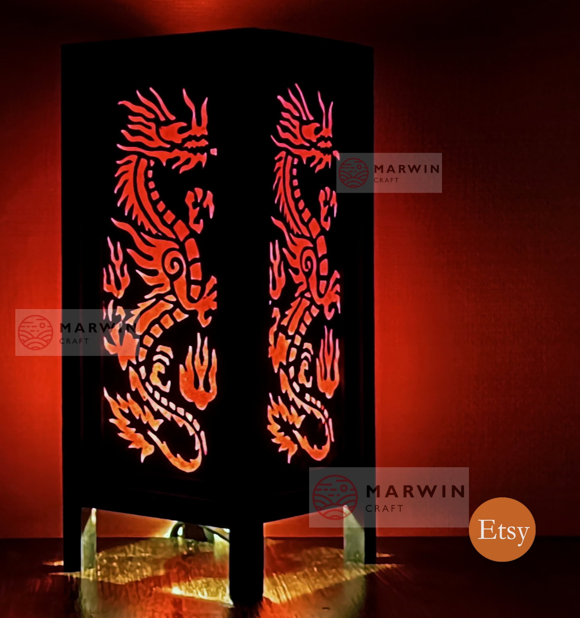 Asian Oriental Red Dragon Japanese Lamp Zen Bedside Lamp Floor Tabl...