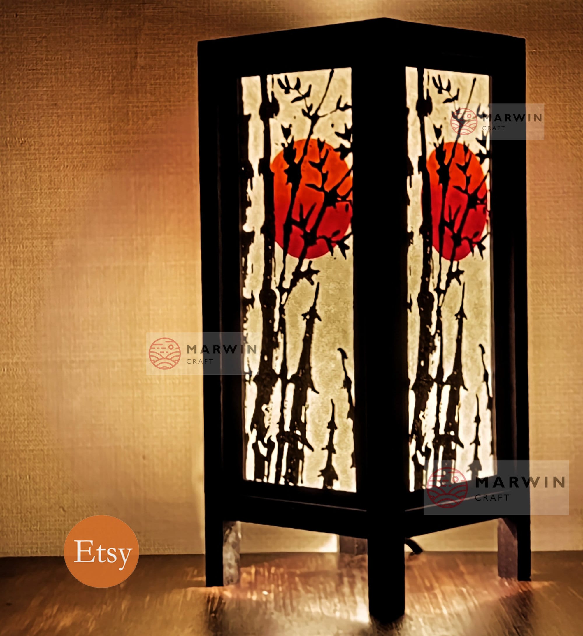 Asian Oriental Bamboo Sunset Japanese Lamp Zen Bedside Lamp Floor T...