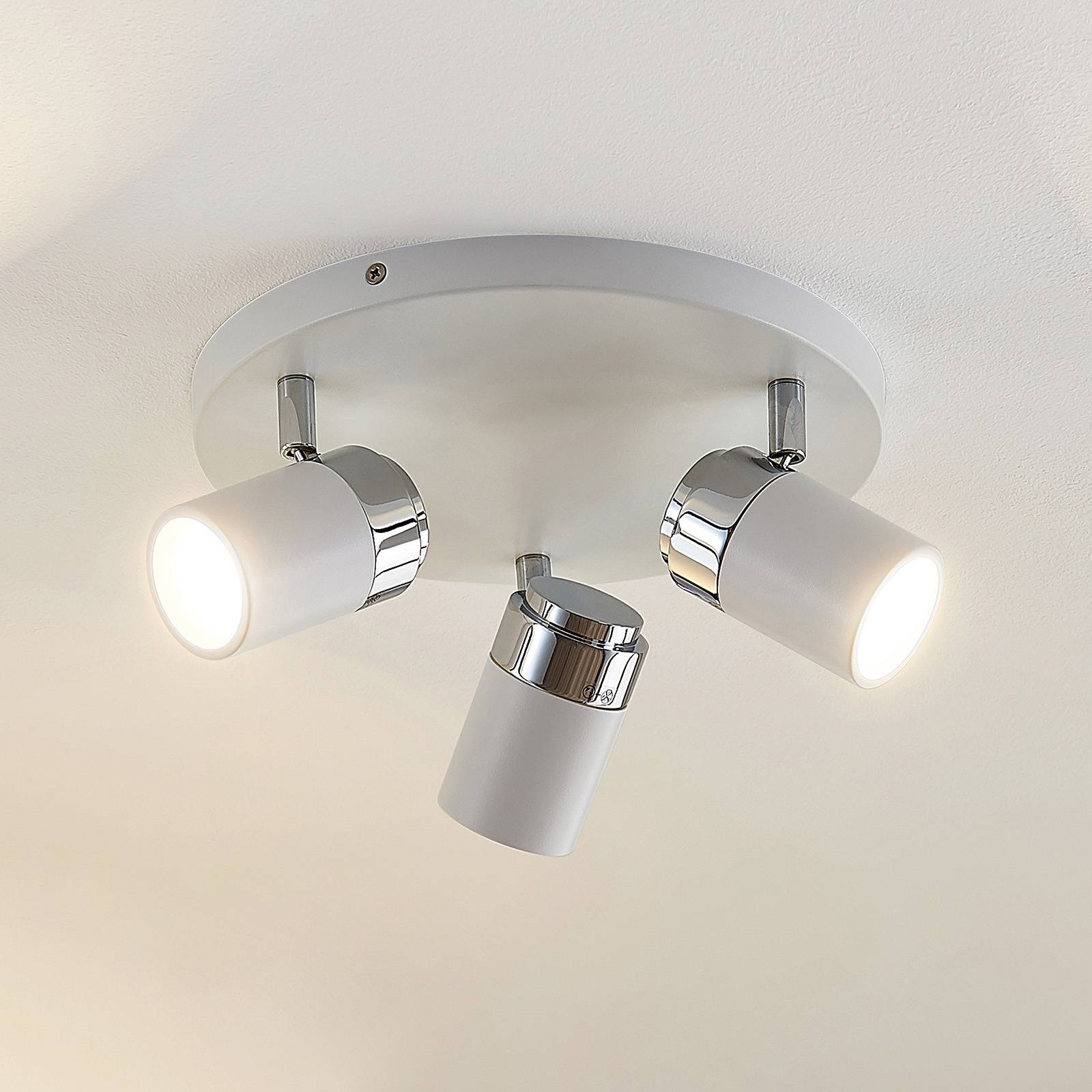 Lindby spotlight Kardo, roundel, 3-bulb, white, metal, IP44 Kardo L...