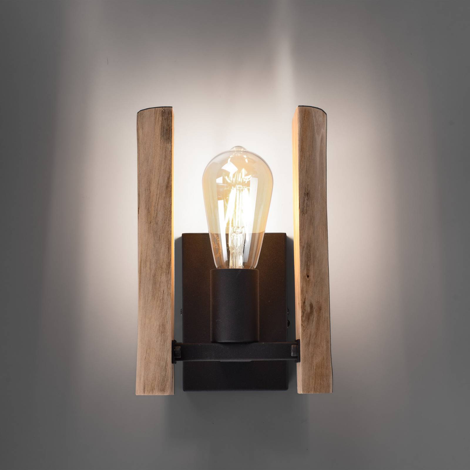 In the Log wall light, the visible bulb holder and the lamp used are framed by a black lacquered met...