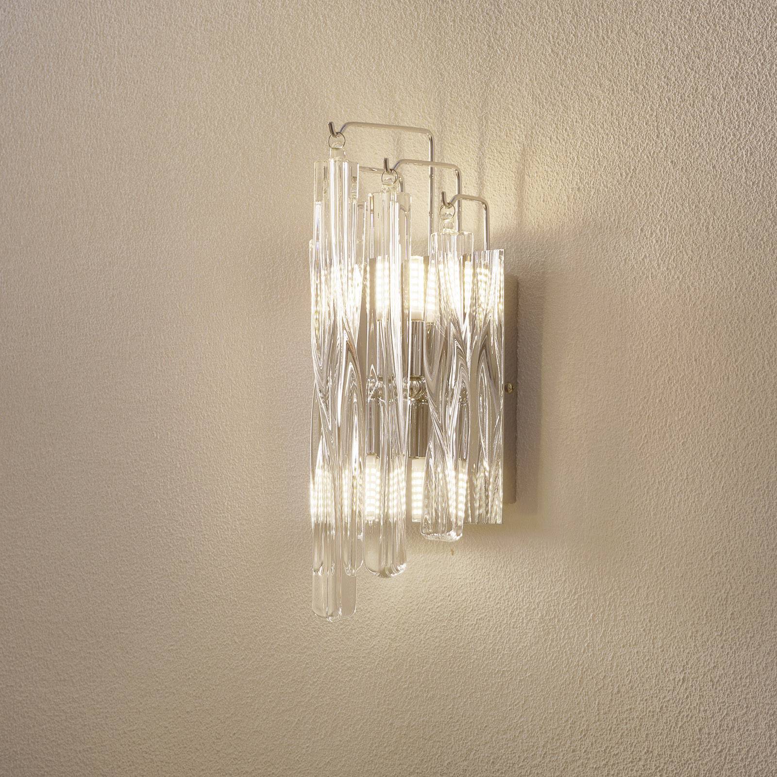The Manacor LED wall light impresses with a curtain of high-quality crystals in front of a wall plat...