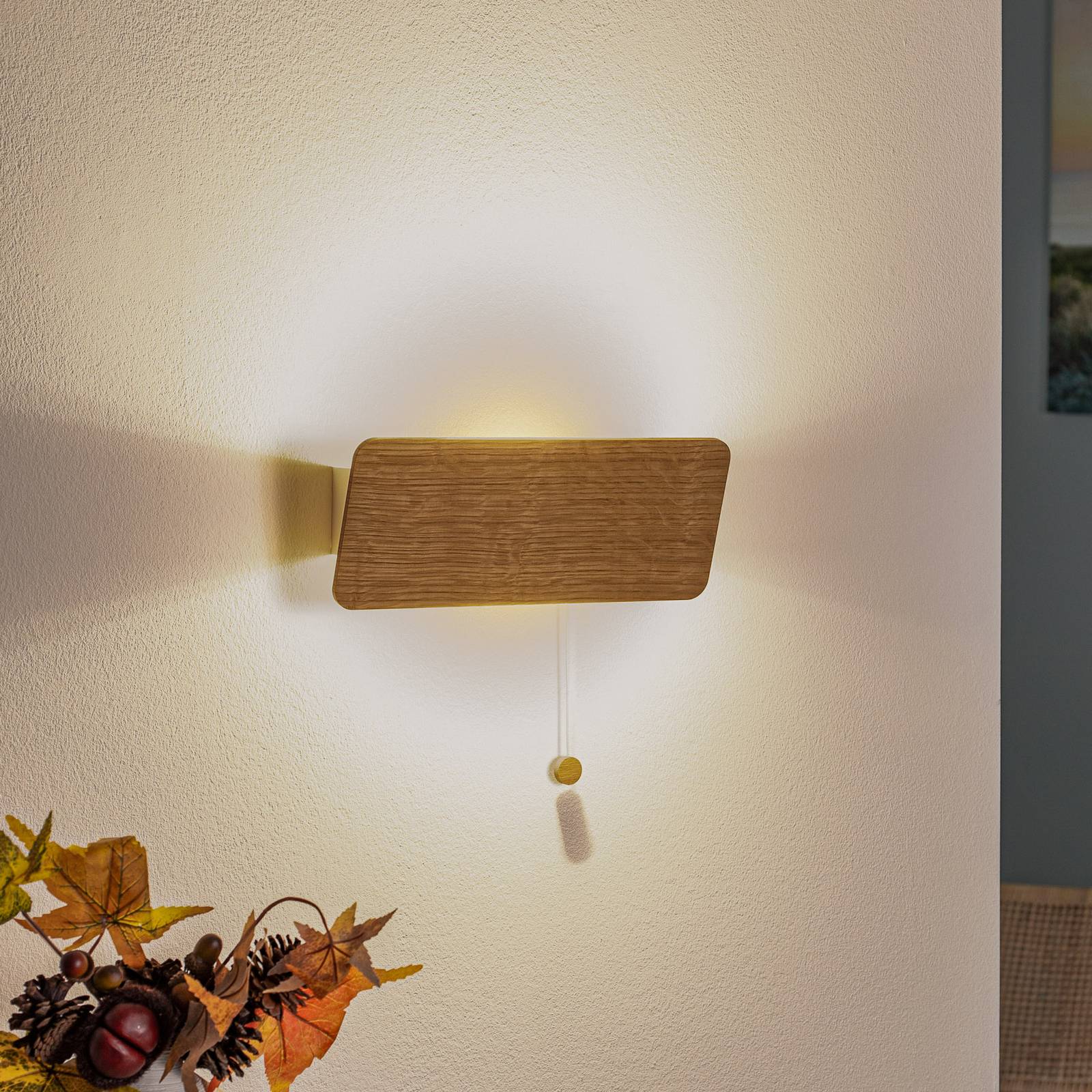 The Oslo wall light consists of a flat, angular wooden element that forms the lampshade and is adjus...