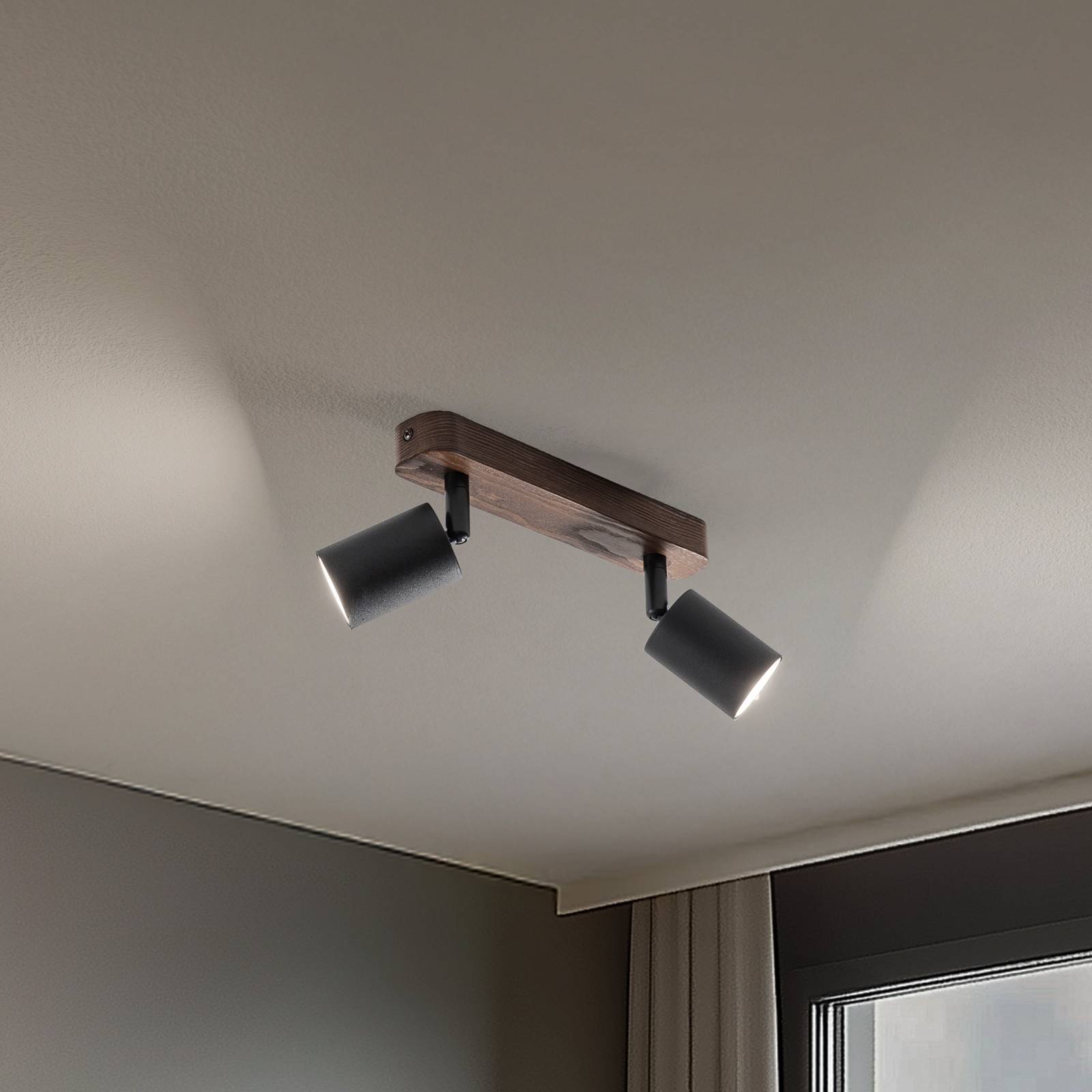 The Subrin ceiling spot consists of a holder made of walnut wood and two rotatable spots made of bla...