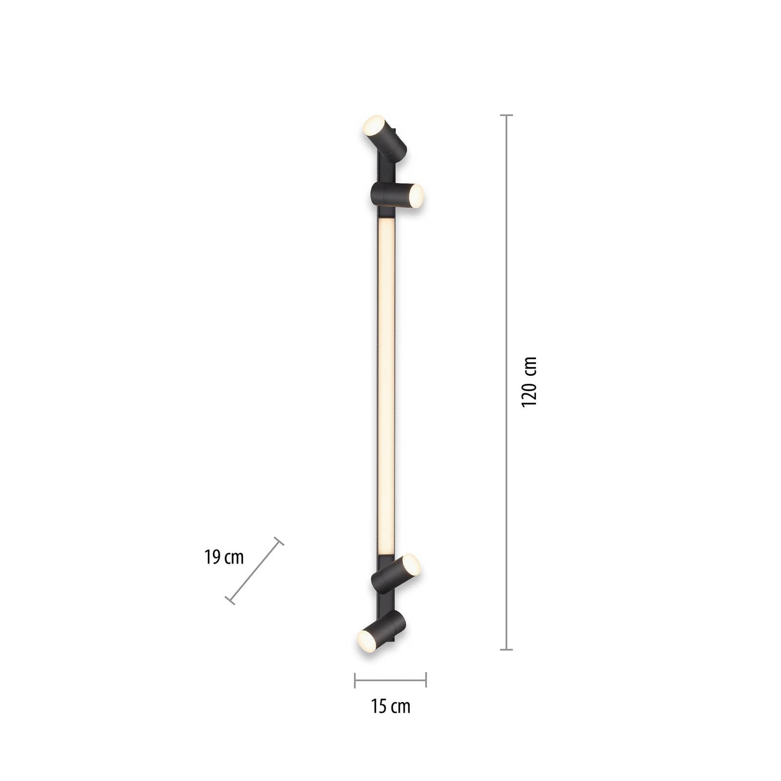 The Pure Lines LED ceiling light has five light sources: four adjustable spots and a narrow light em...