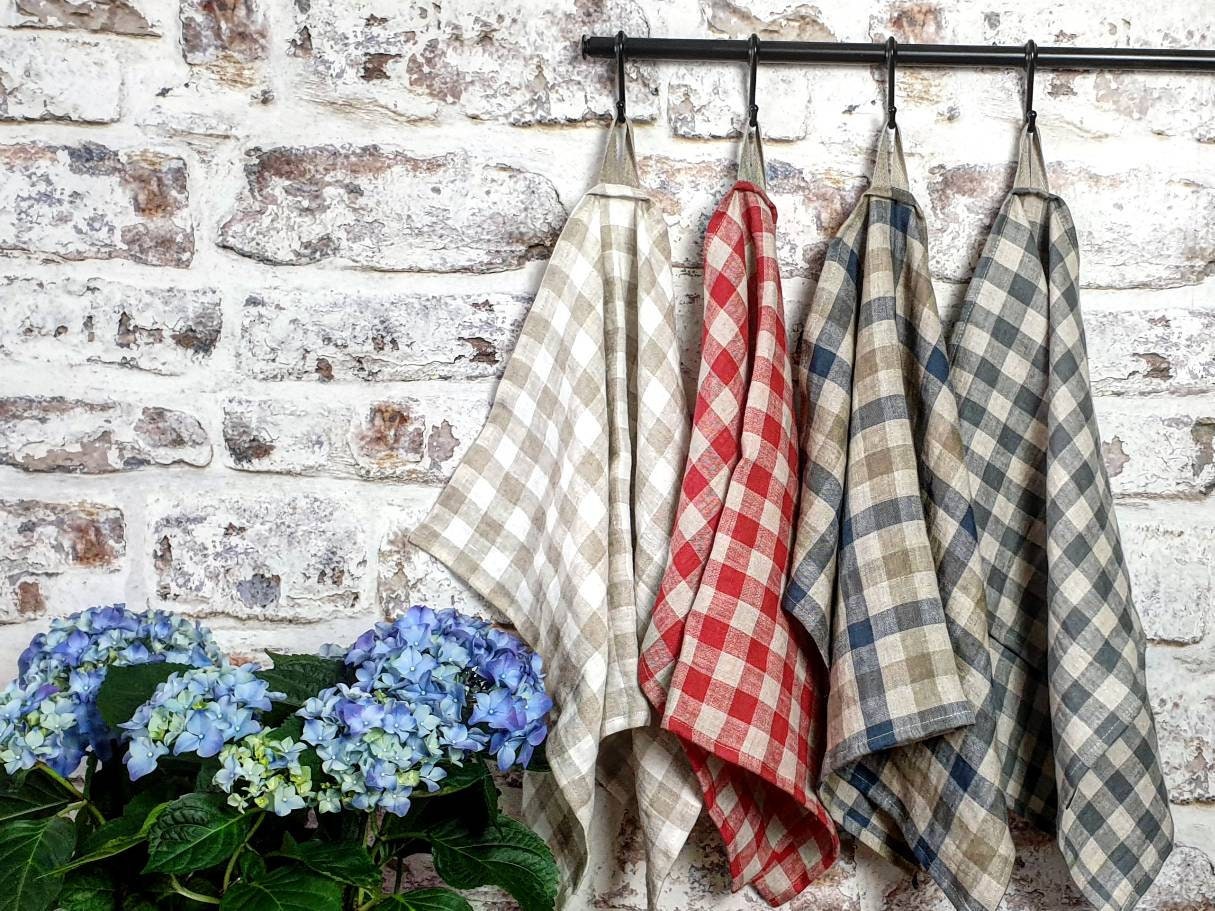Gingham plaid 100% linen tea towels are made of the highest quality European linen fabric. Buffalo c...