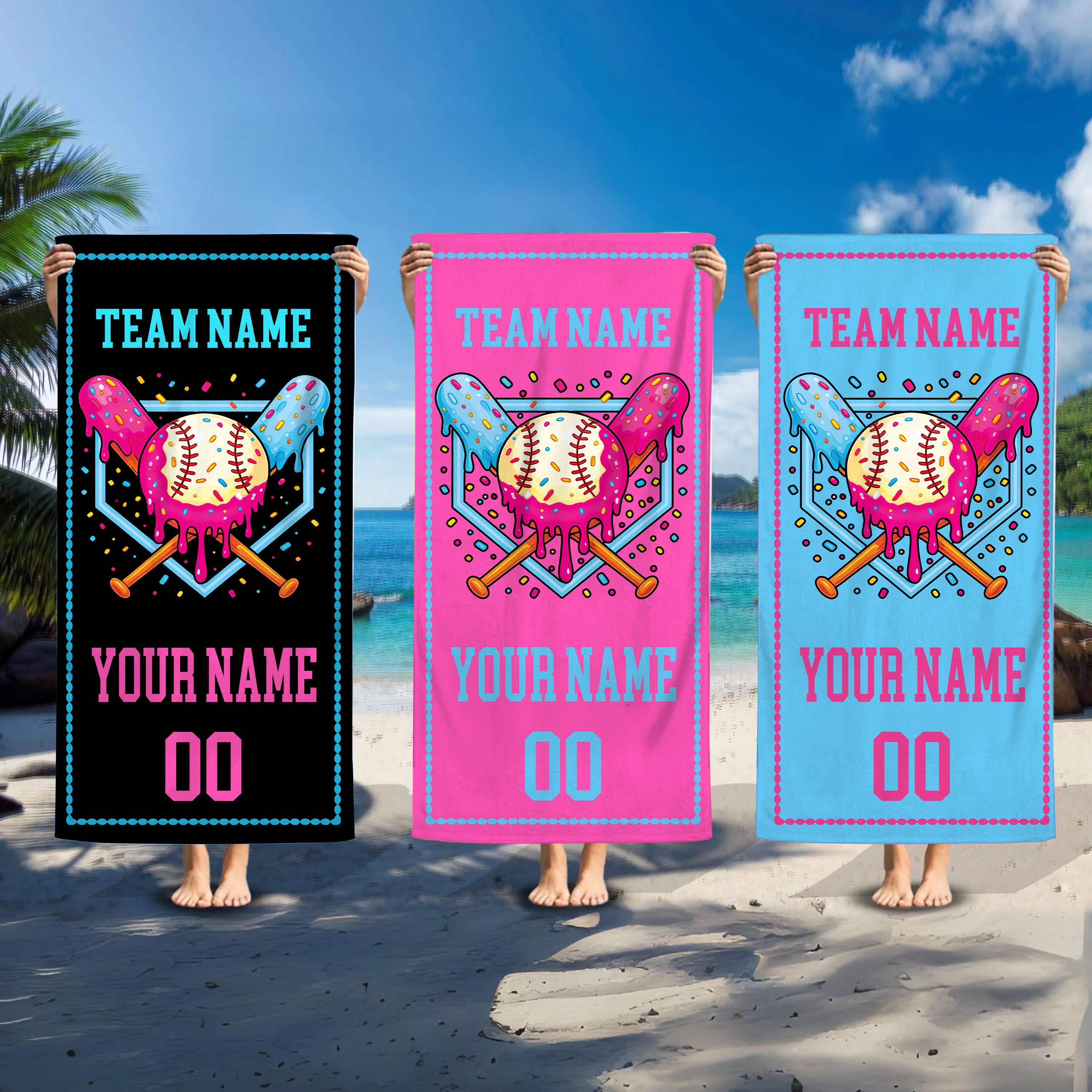 Custom Drip Ice Cream Baseball Beach Towel, Ice Cream Baseball Towel, Kid, Teen, Boys Baseball Towel...
