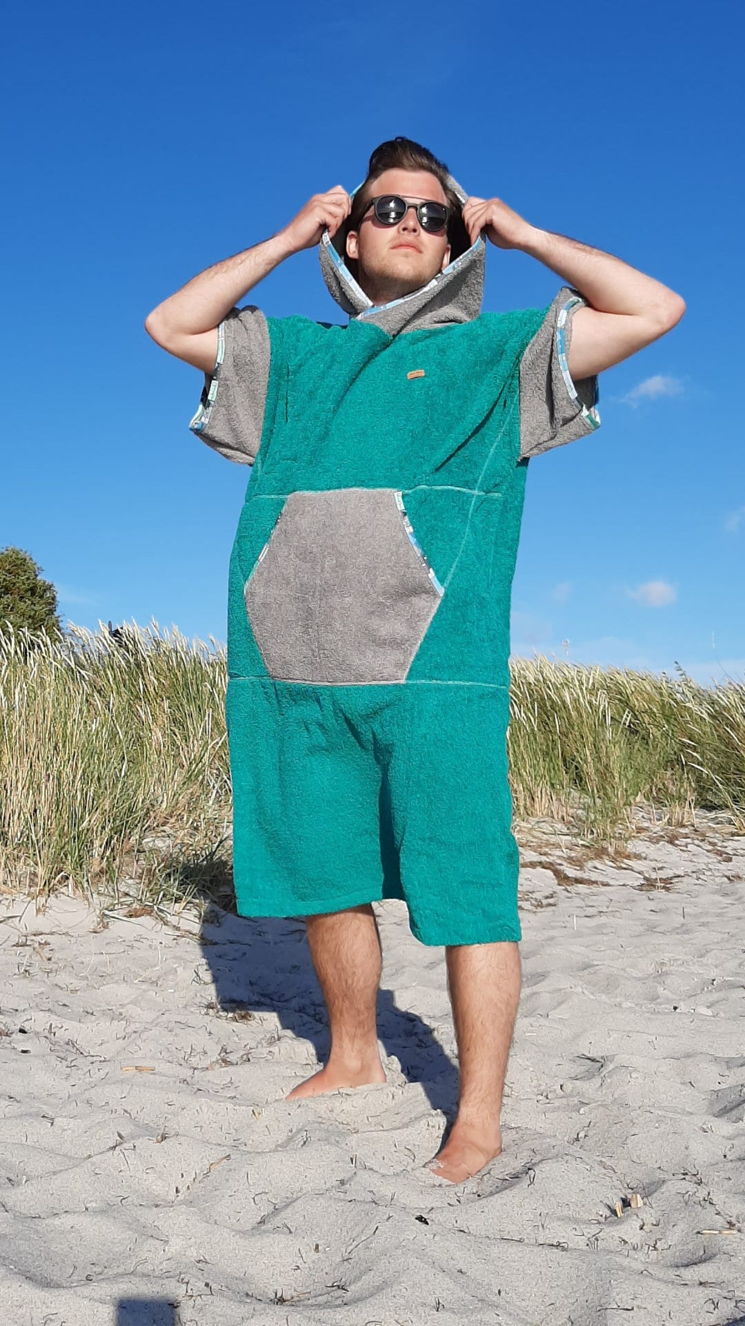 Handmade Cotton Surf Poncho: Hooded Beach Changing Robe for Man