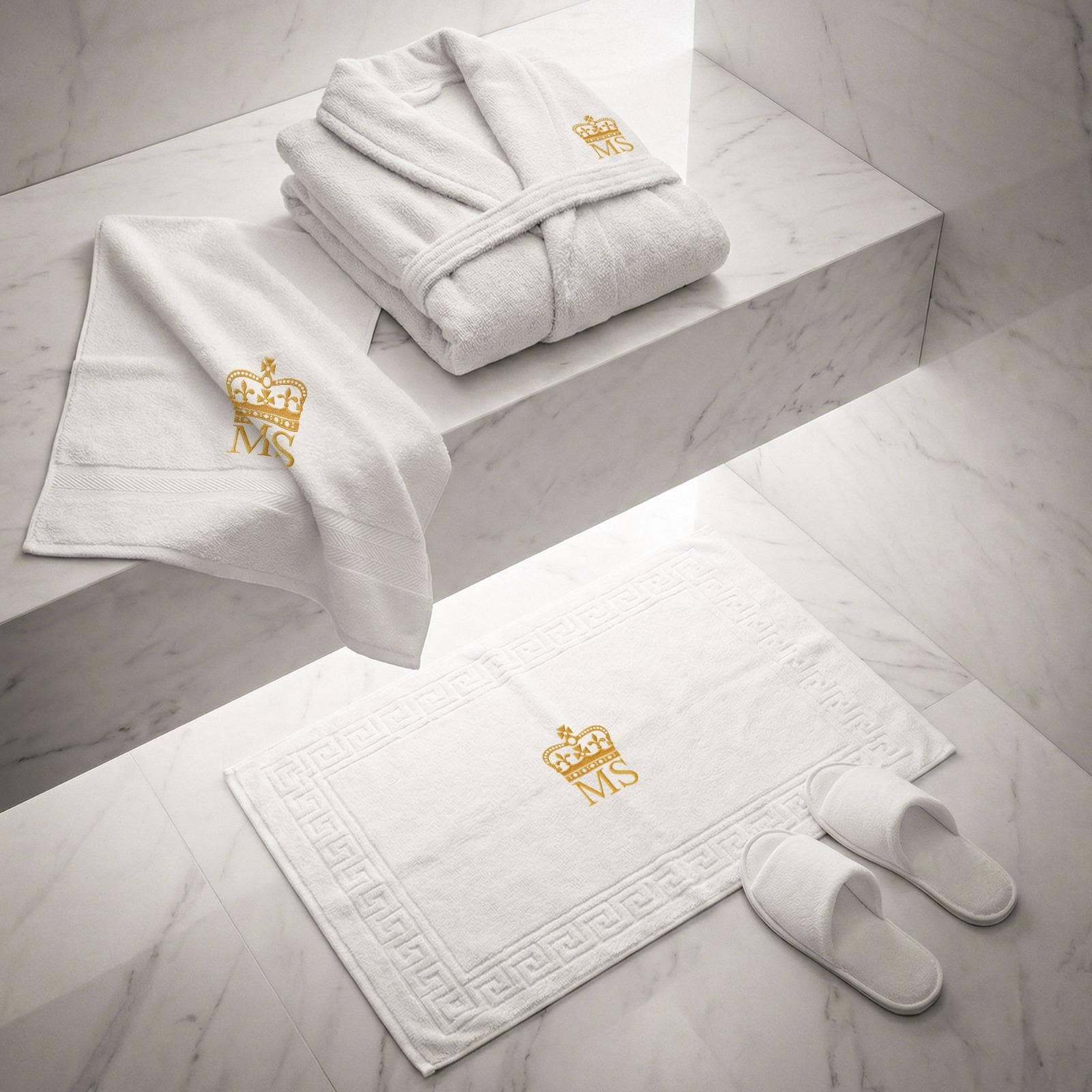 Personalised Towel, Bathrobe, Bathmat and Slipper Package - Custom ...
