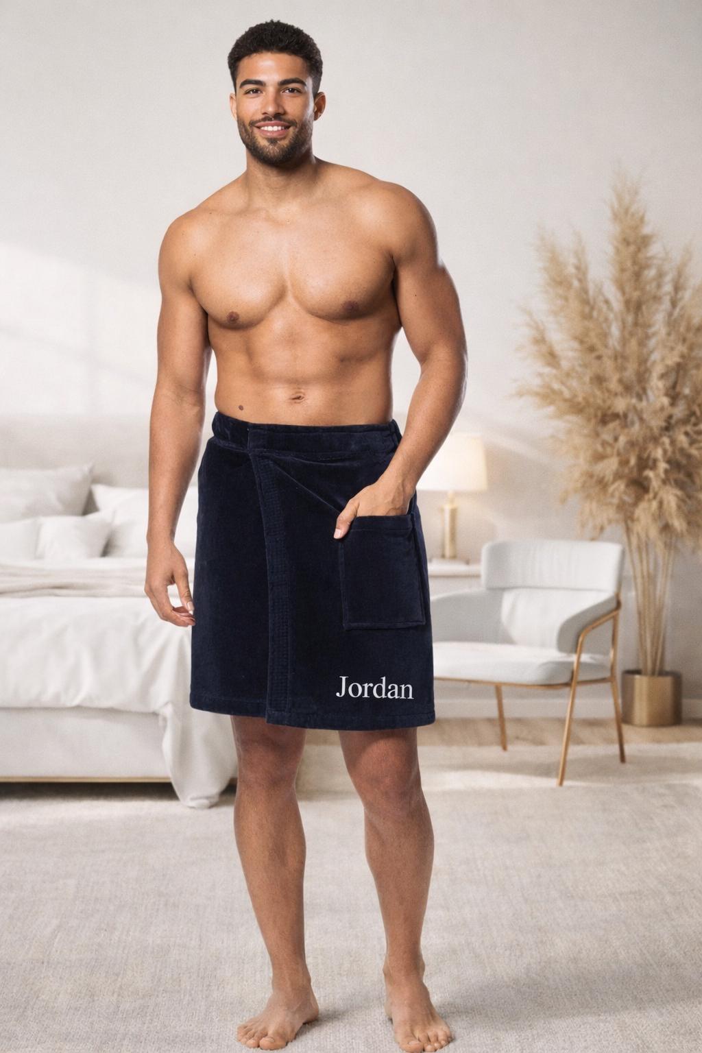 Men's Towel Wrap - Embroidered Turkish Cotton Spa Wrap - Custom Terry Bath Wrap for Gym, Sauna &...