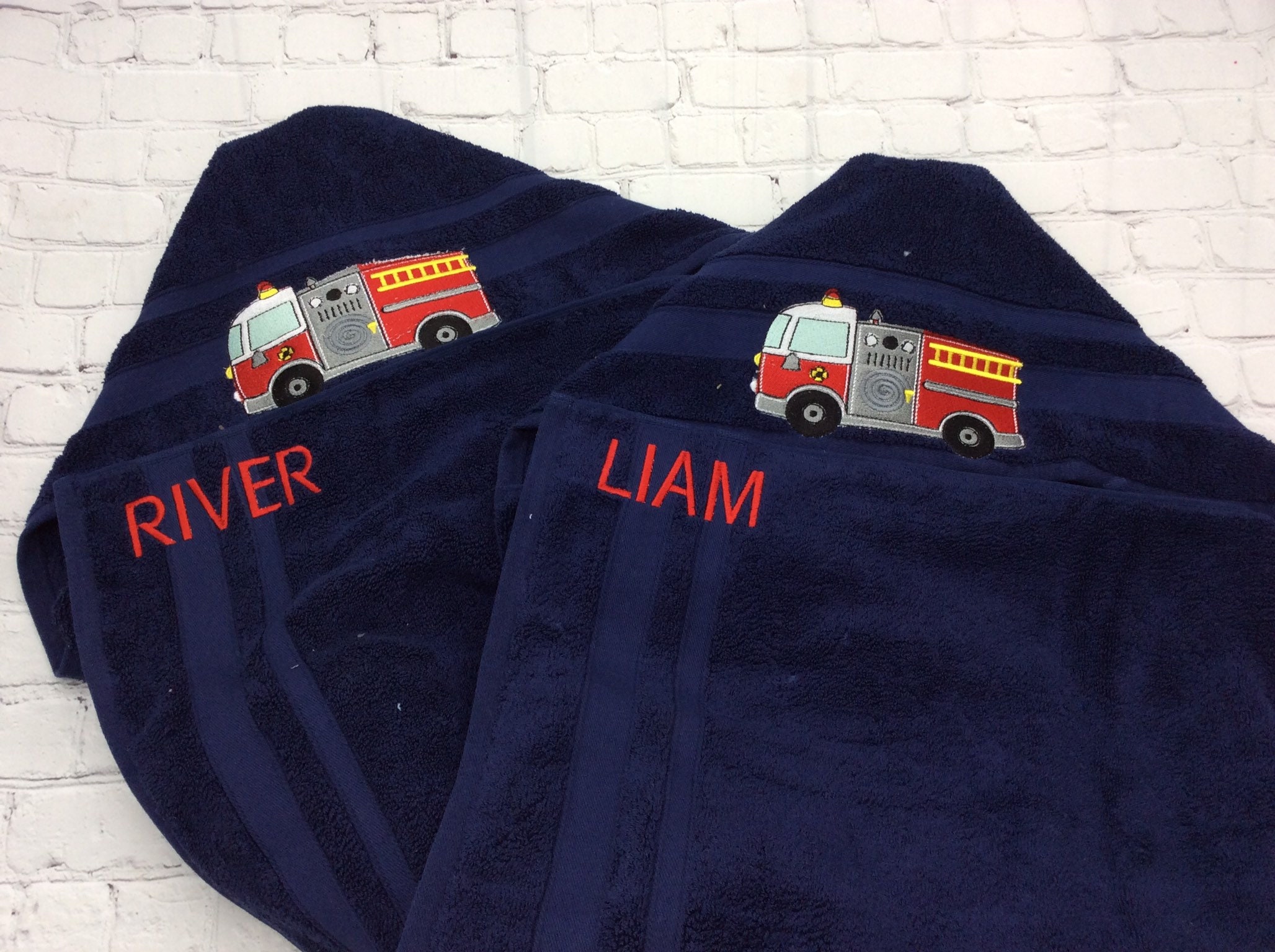 Fire Engine Hooded Towel, Cotton Washable Bath Towel with Name Embr...