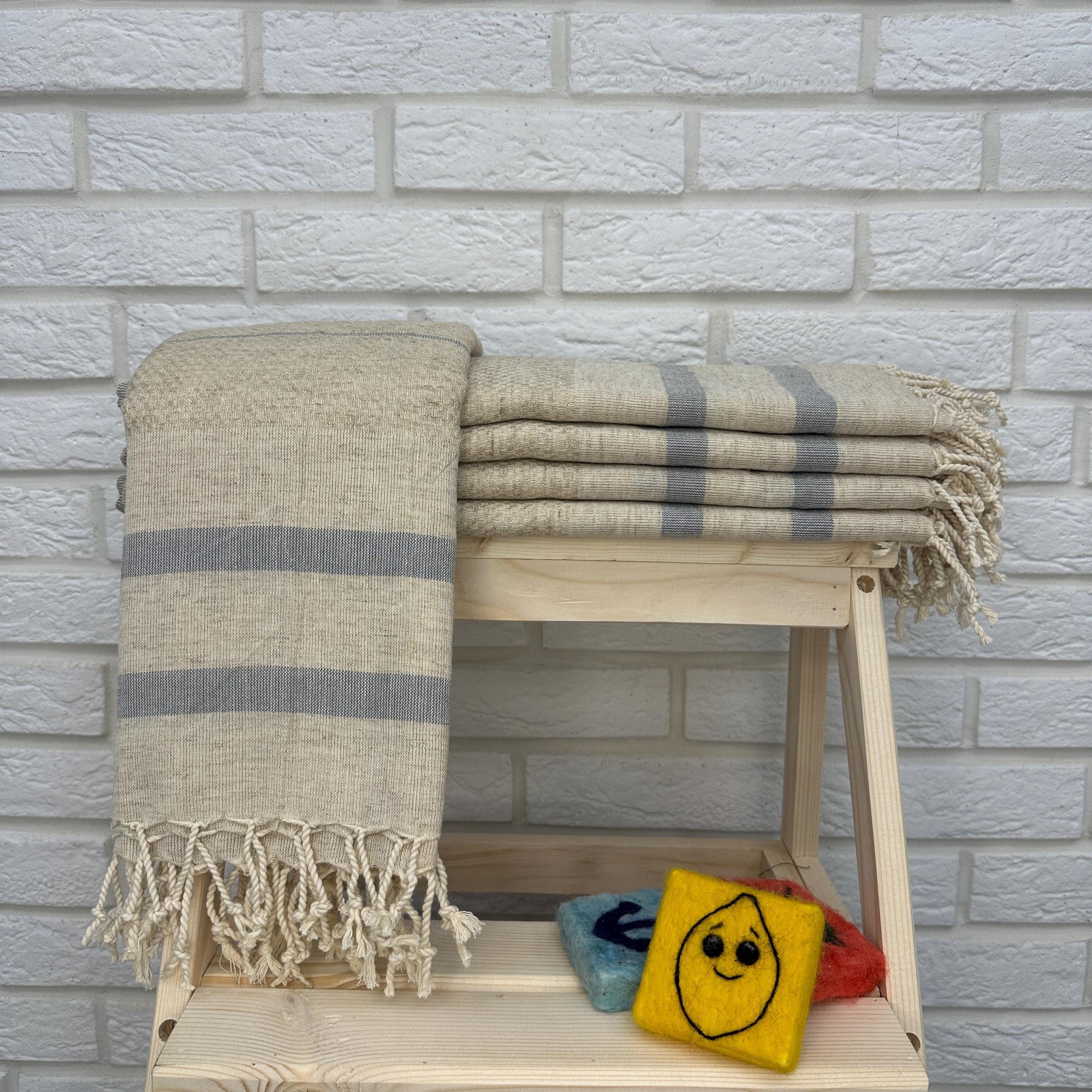 Gray Linen Towel 40x70, Gray Stripe Peshtemal, Quick Dry Beach Towe...